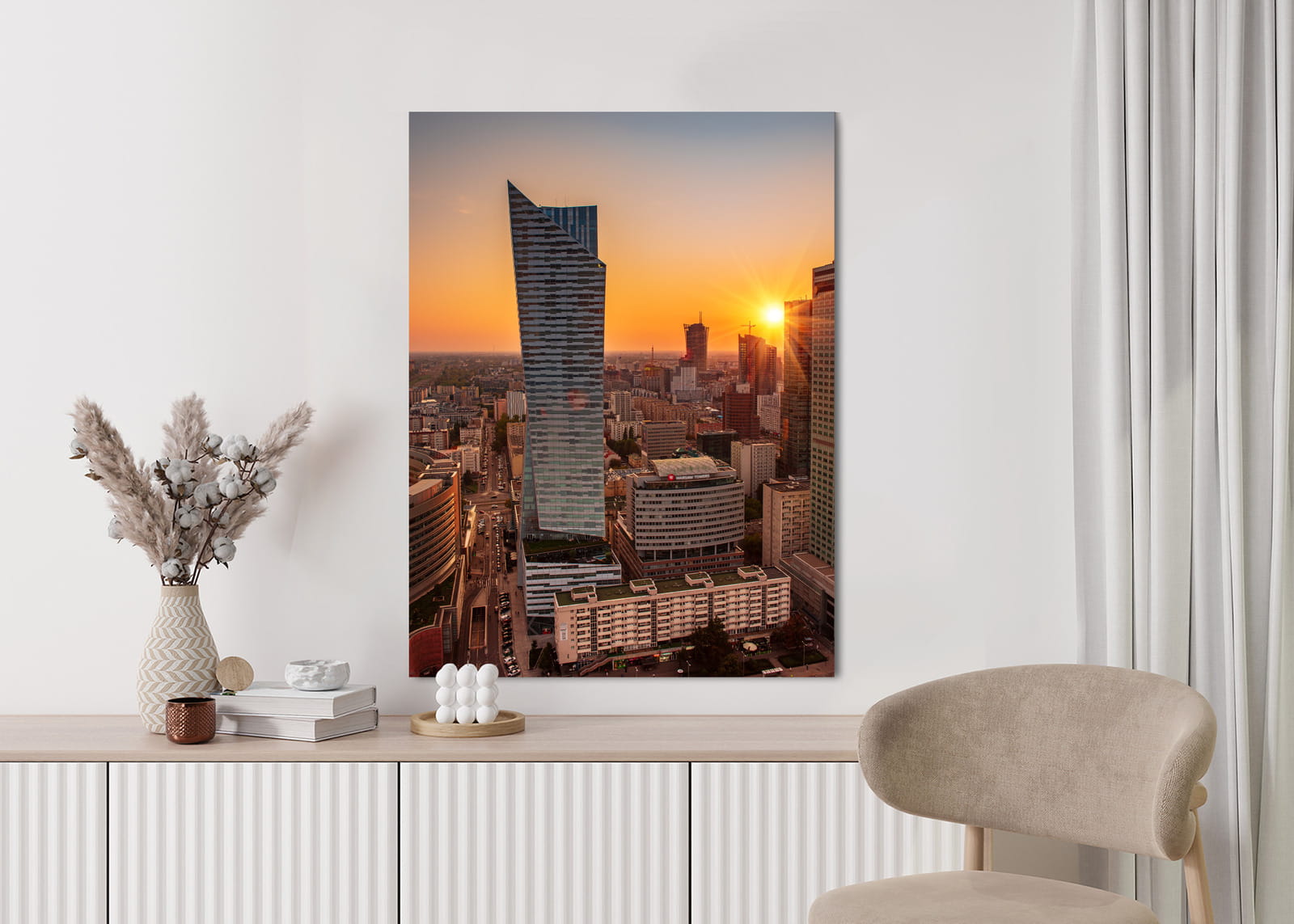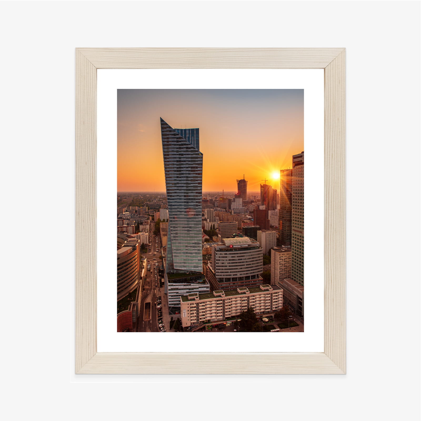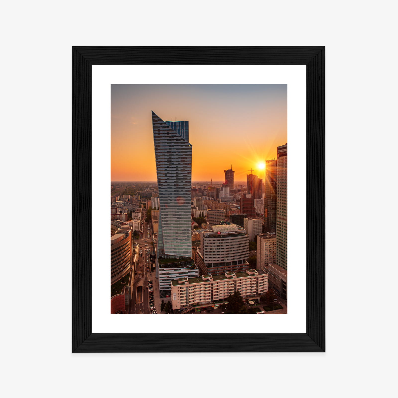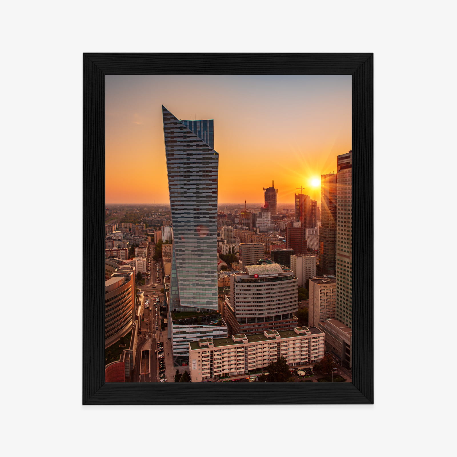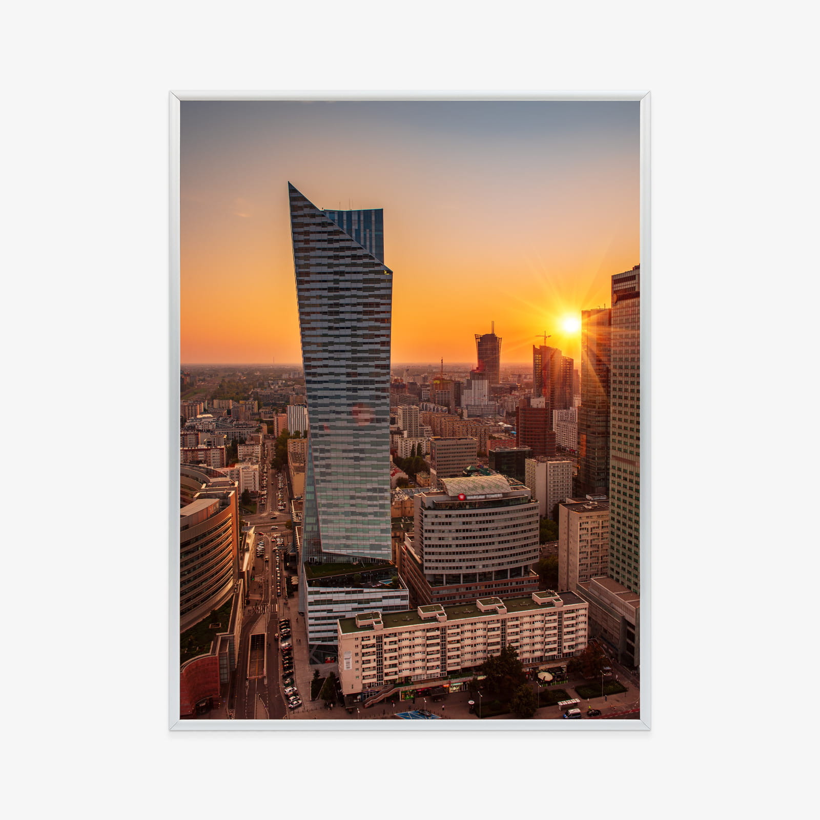 Plakat Wieżowce W Warszawie O Zachodzie Słońca