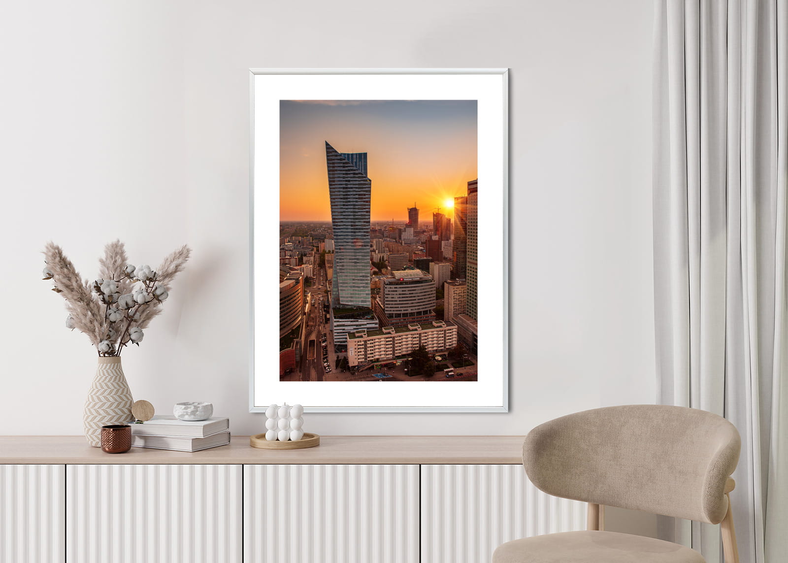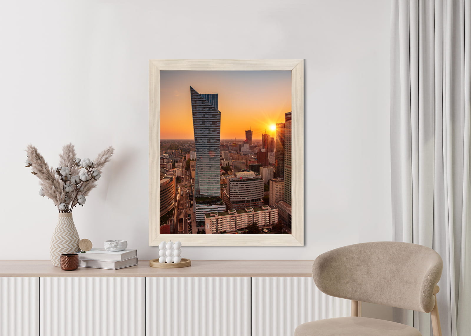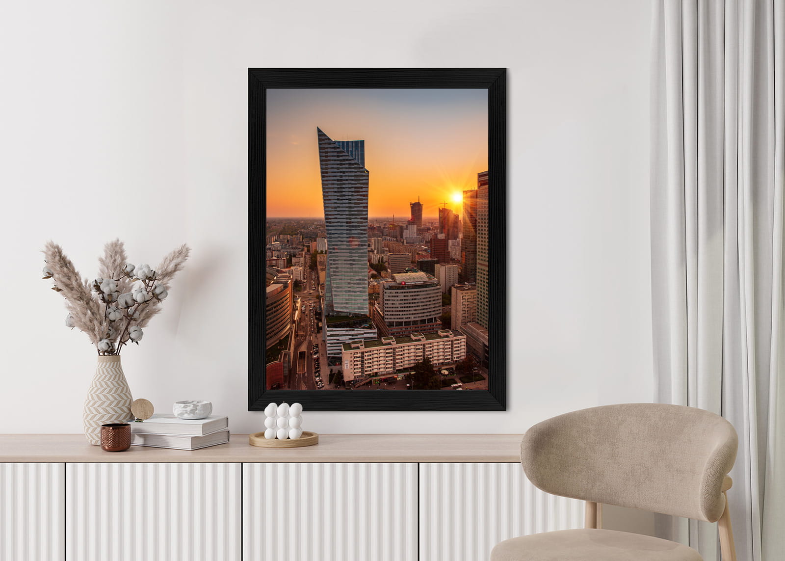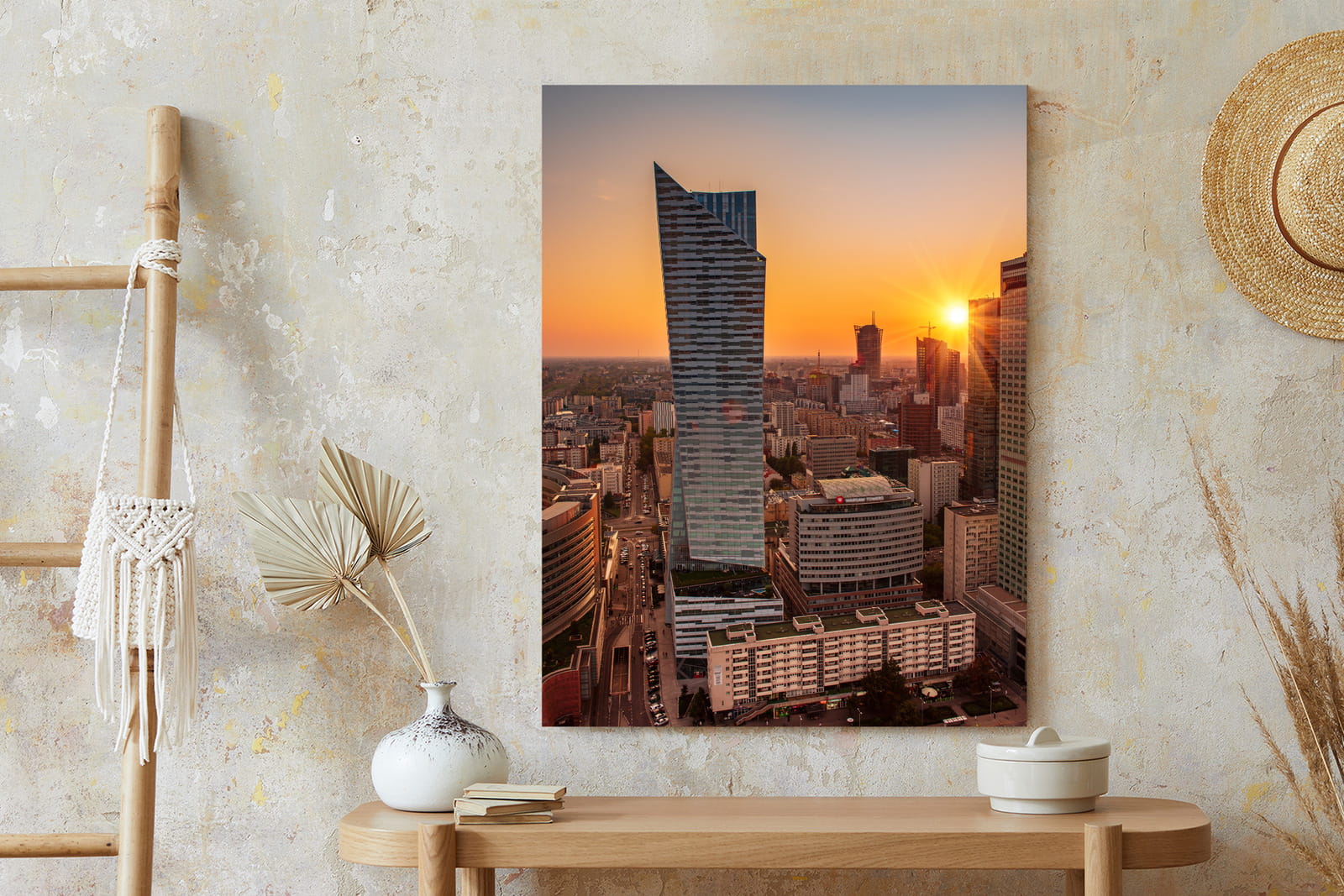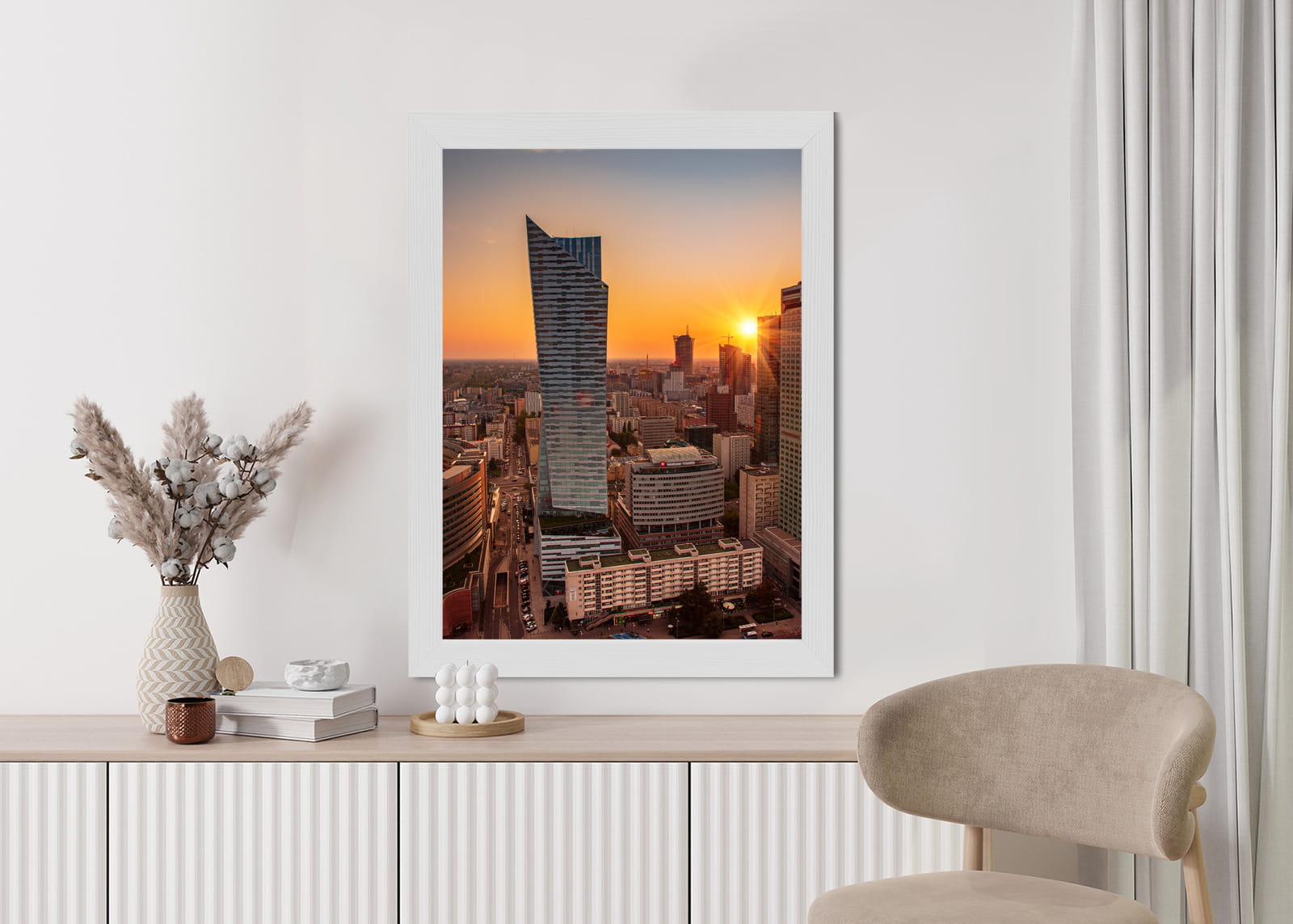 Plakat Wieżowce W Warszawie O Zachodzie Słońca