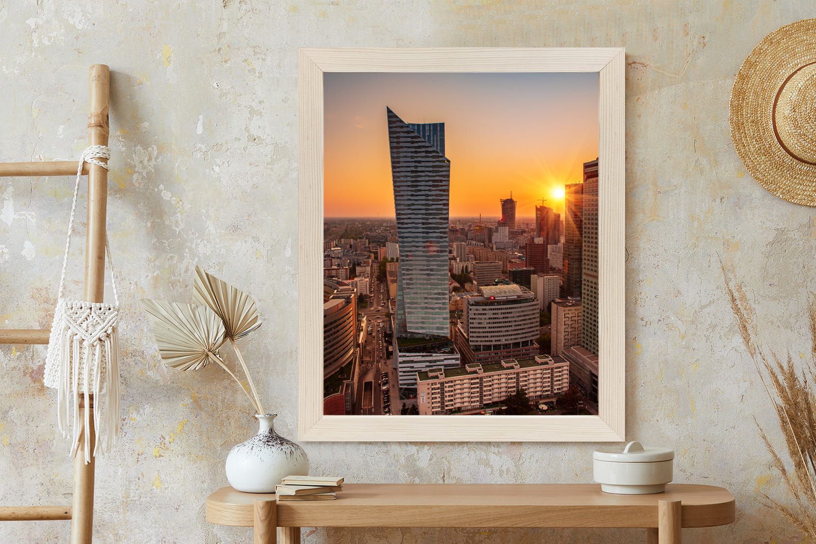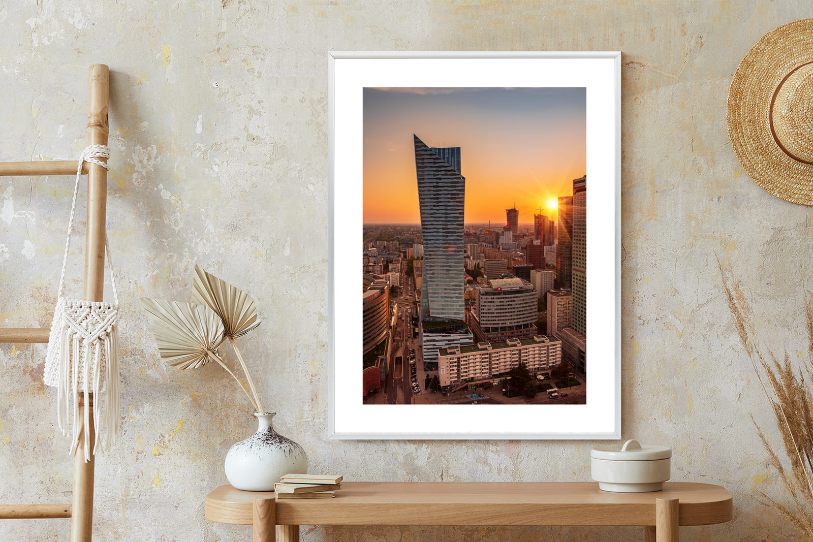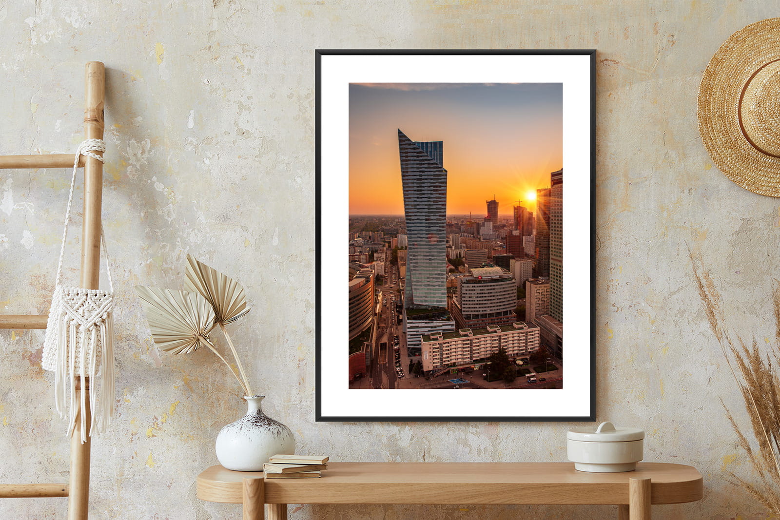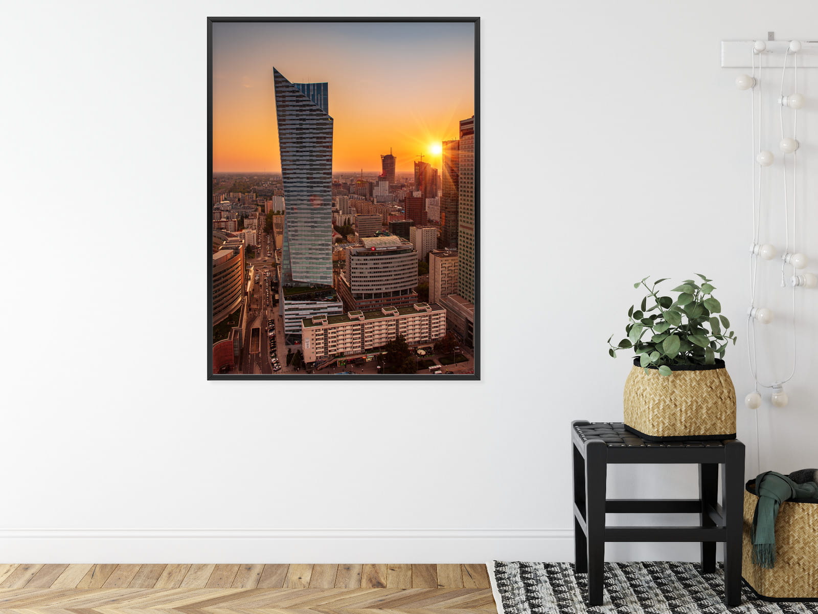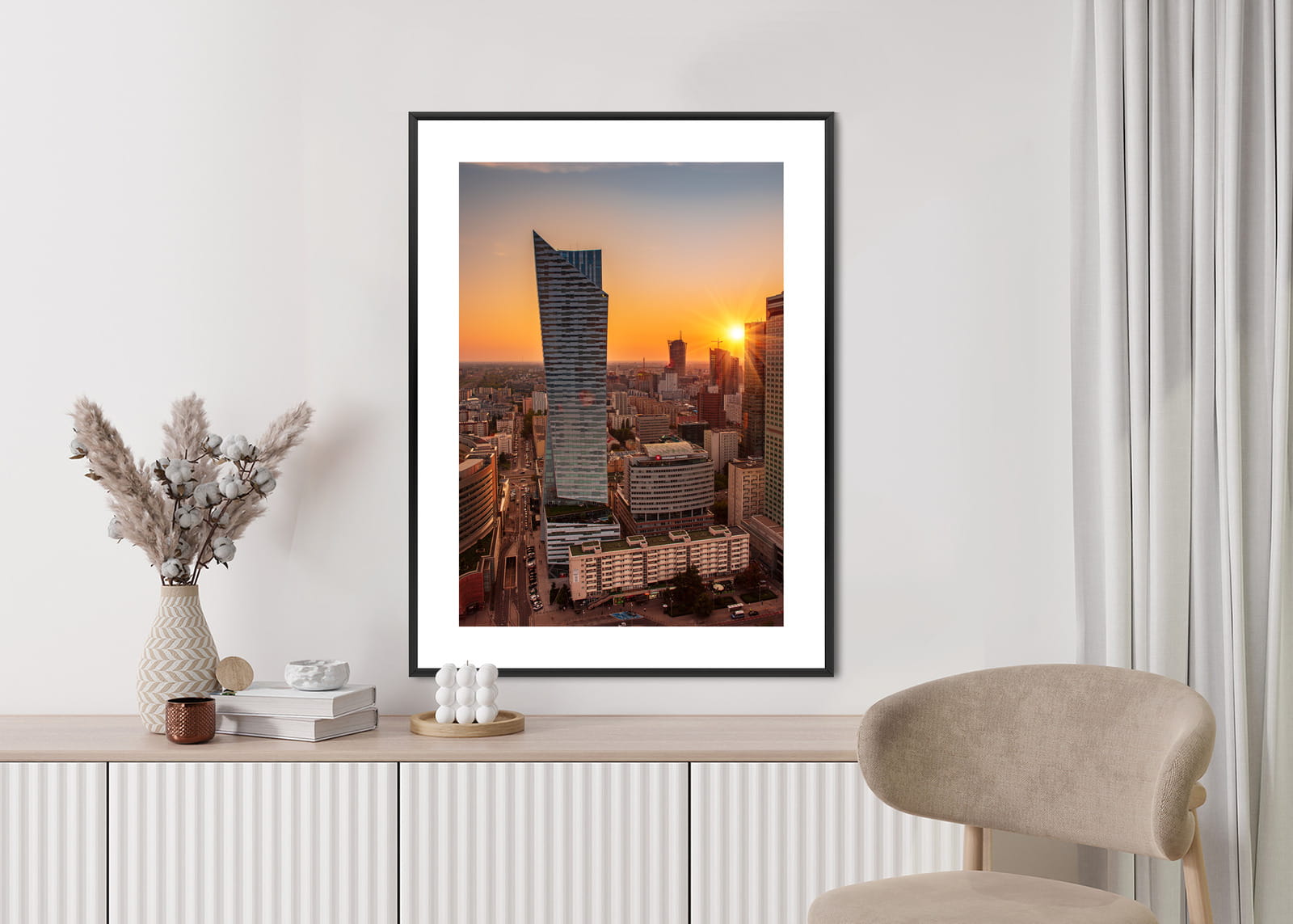 Plakat Wieżowce W Warszawie O Zachodzie Słońca