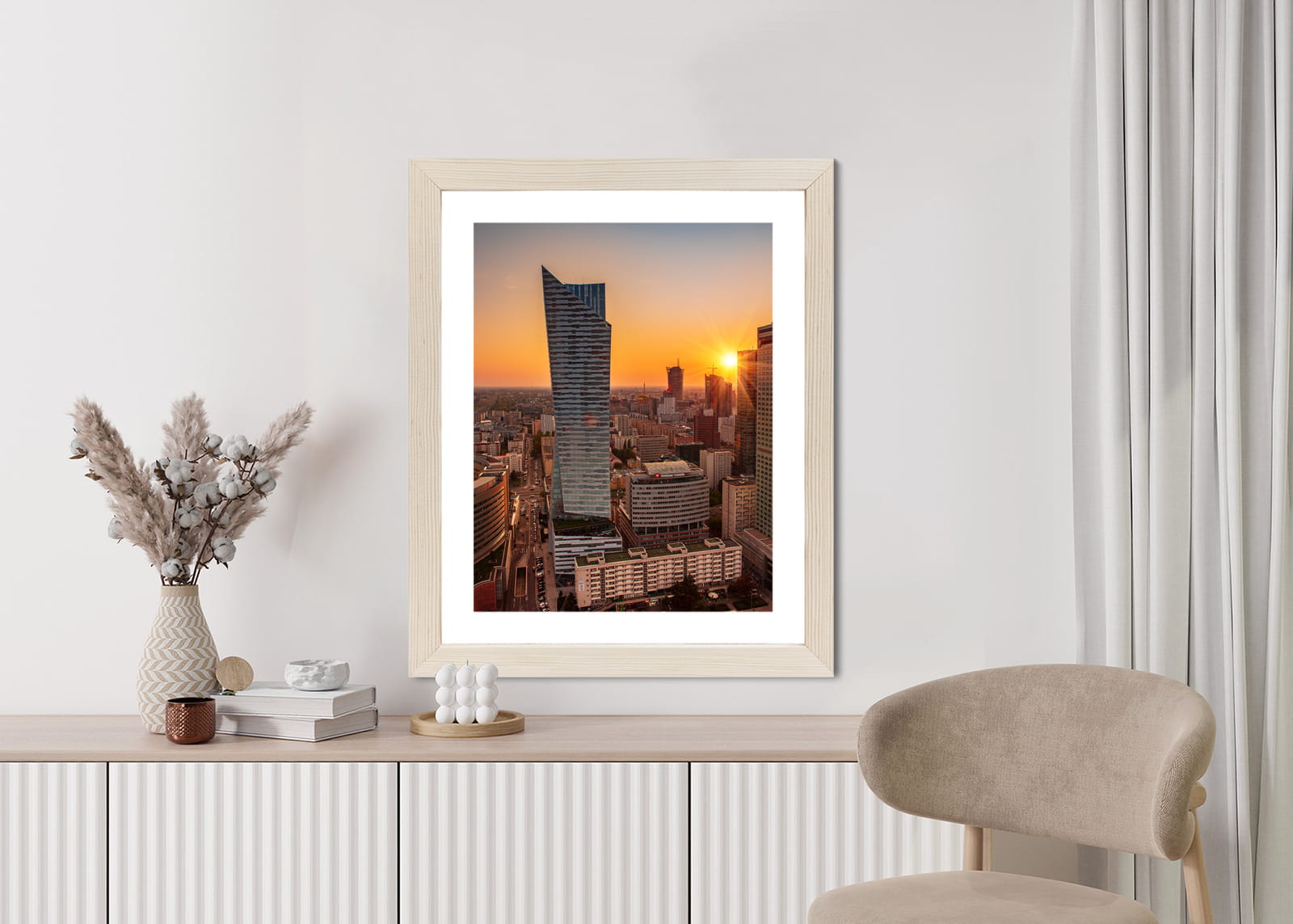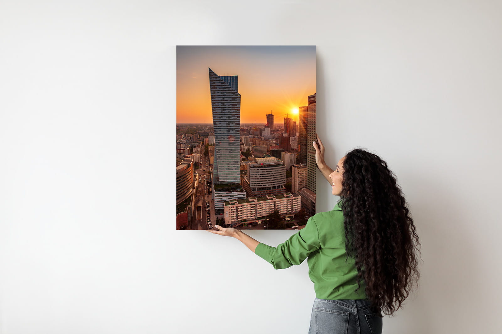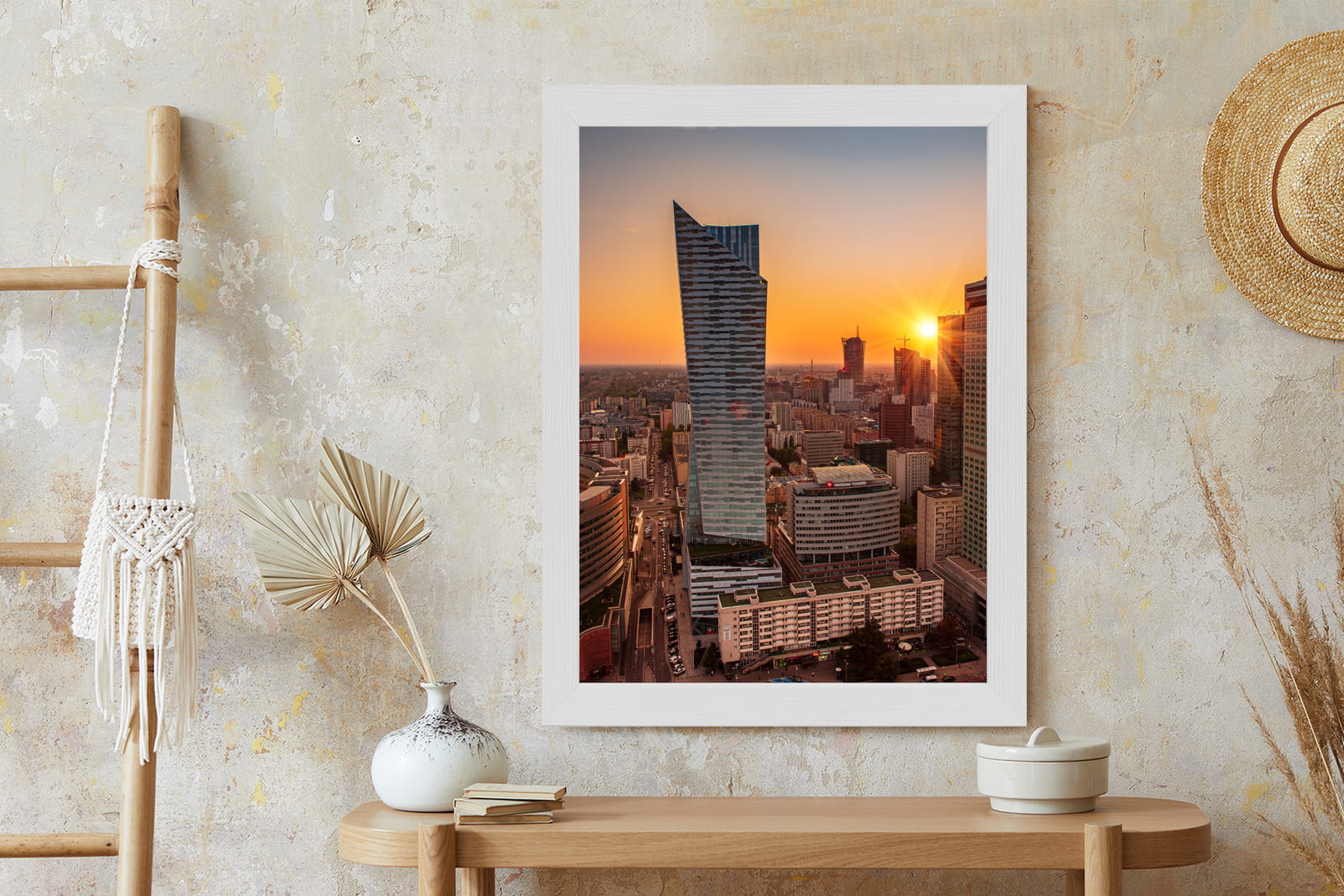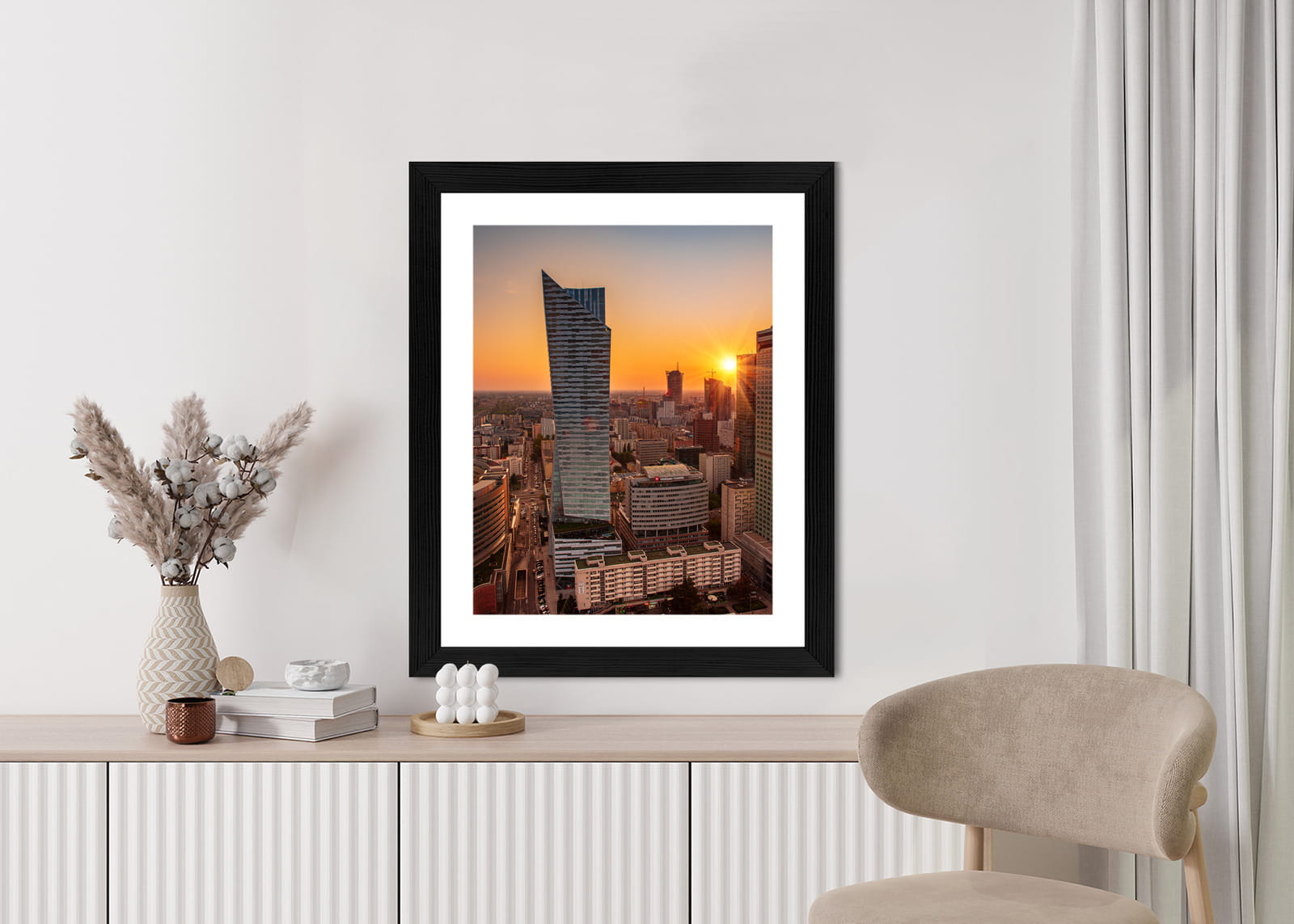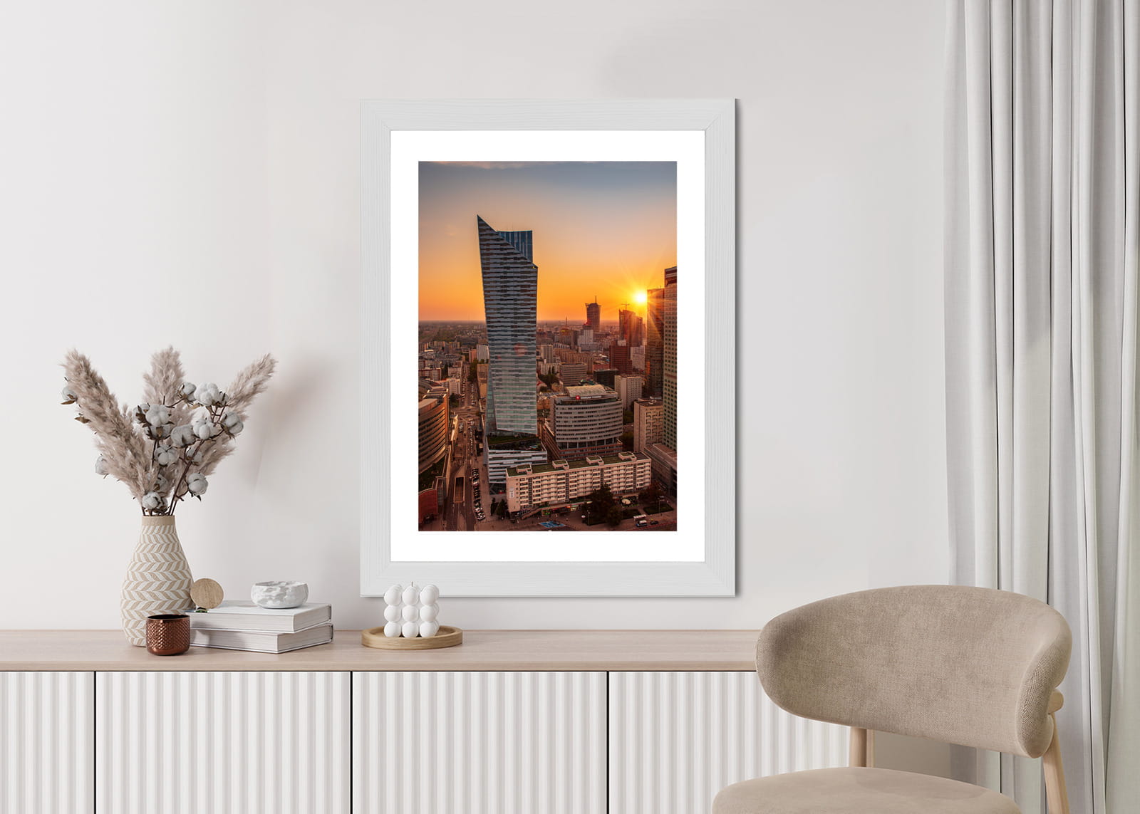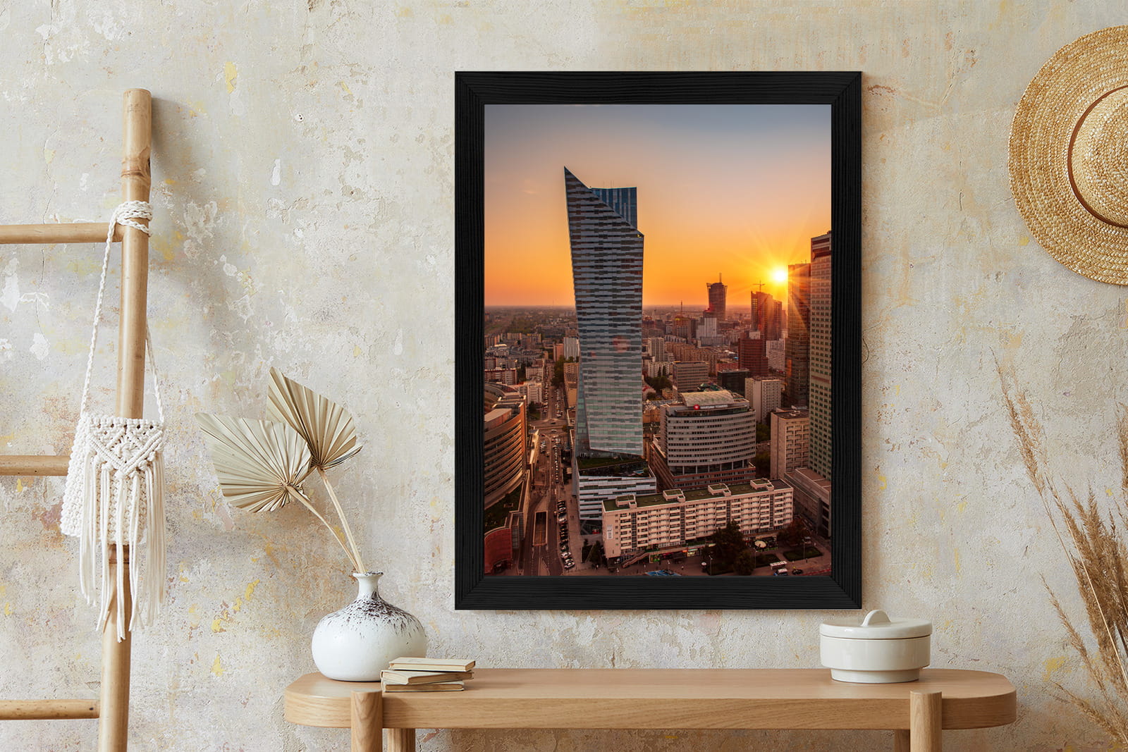Plakat Wieżowce W Warszawie O Zachodzie Słońca