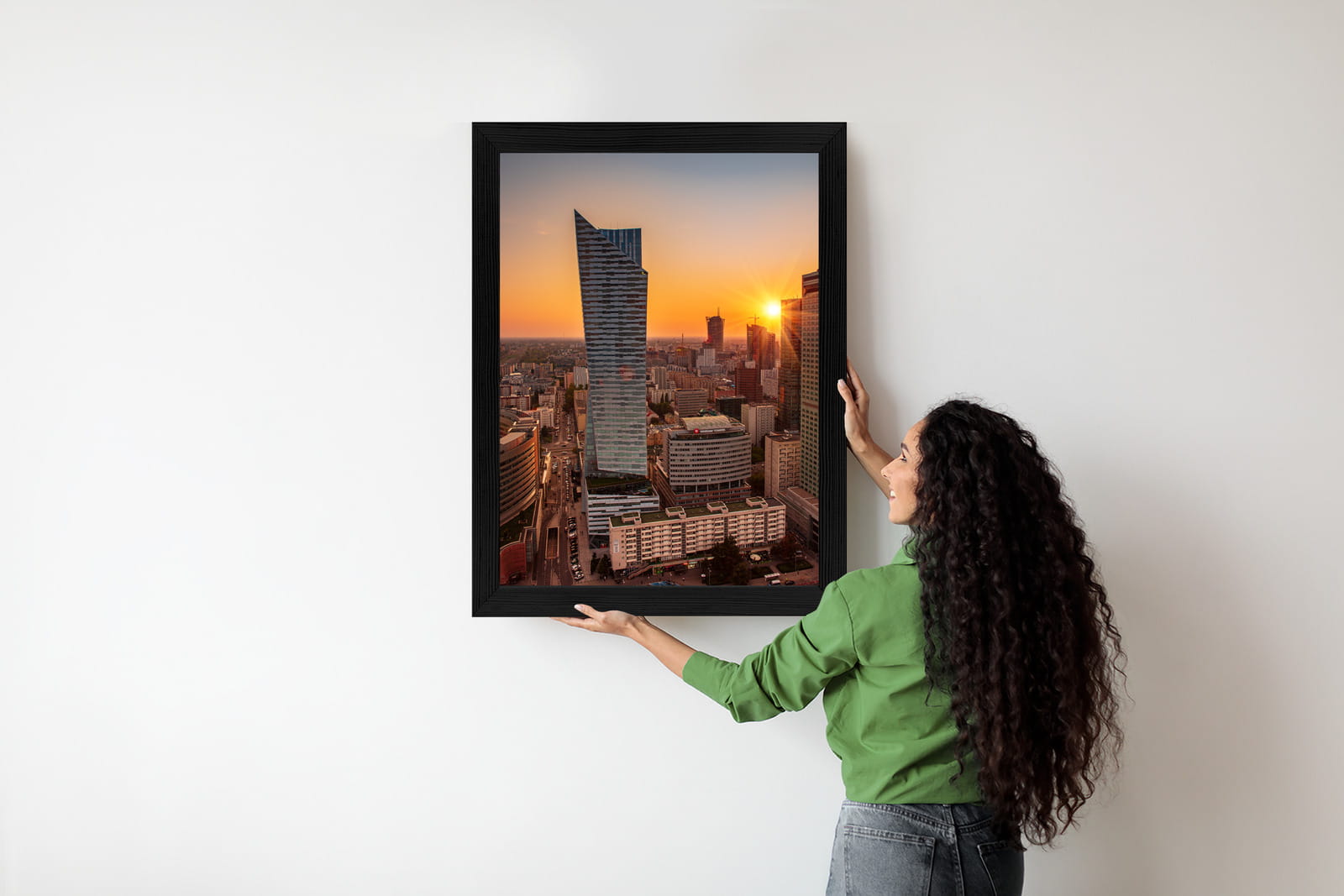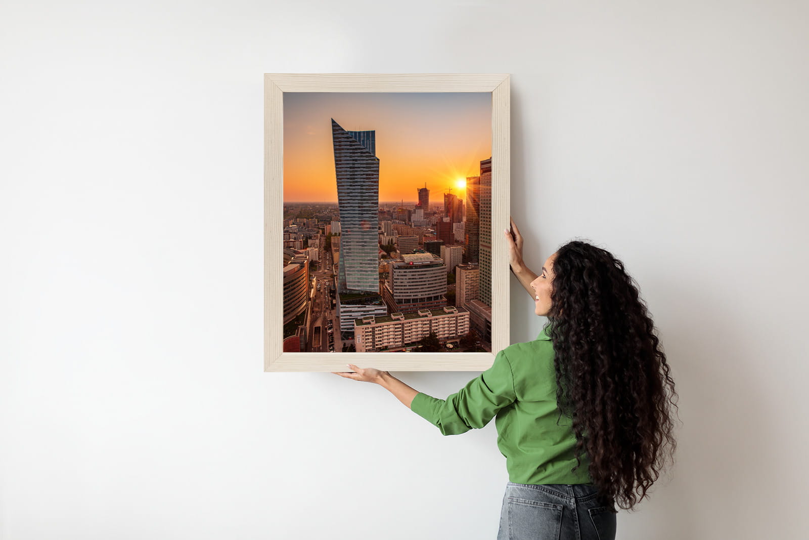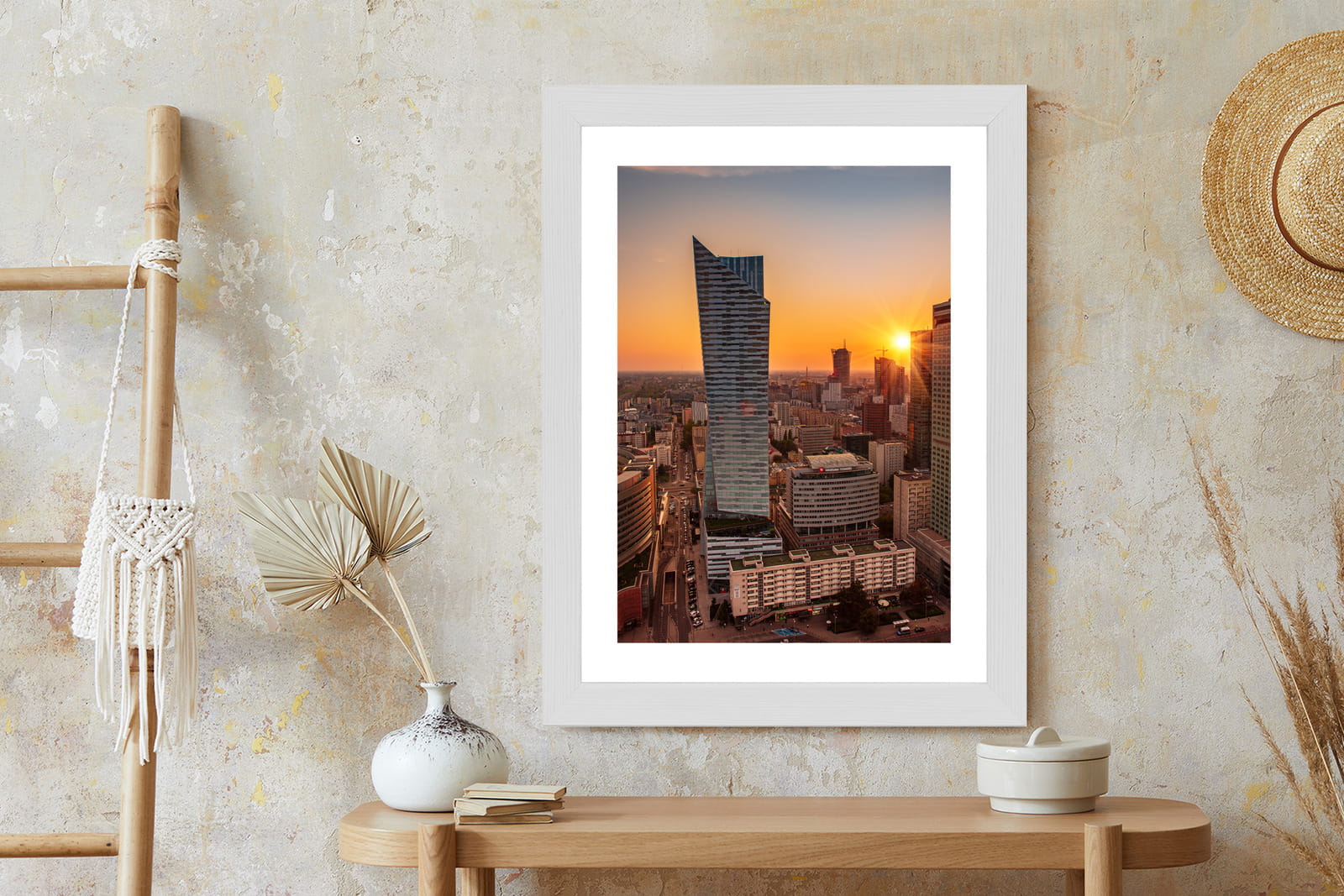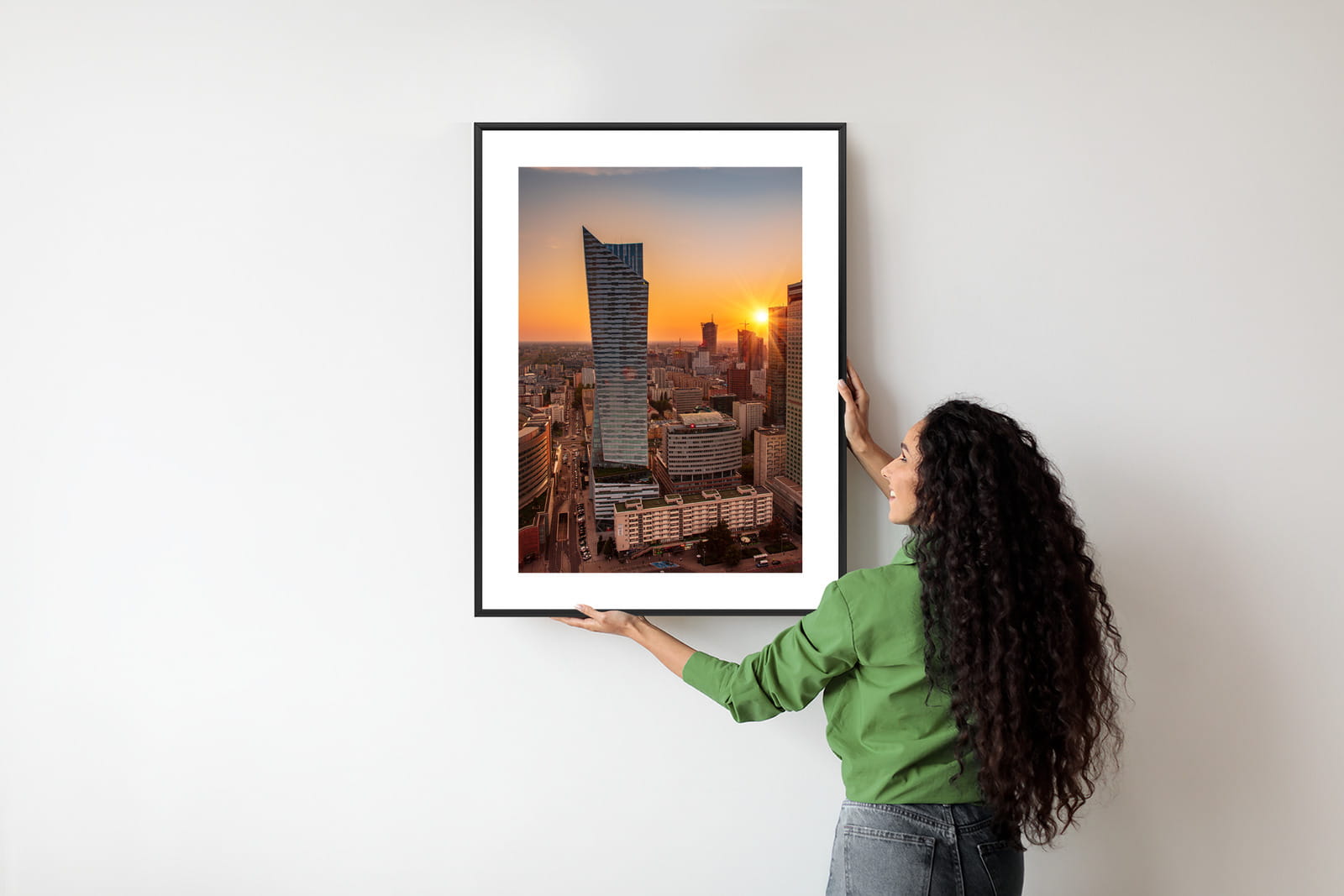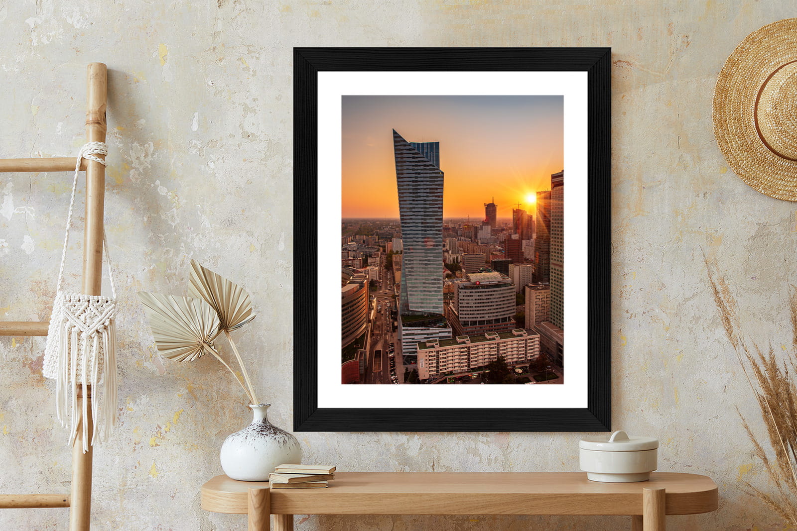 Plakat Wieżowce W Warszawie O Zachodzie Słońca