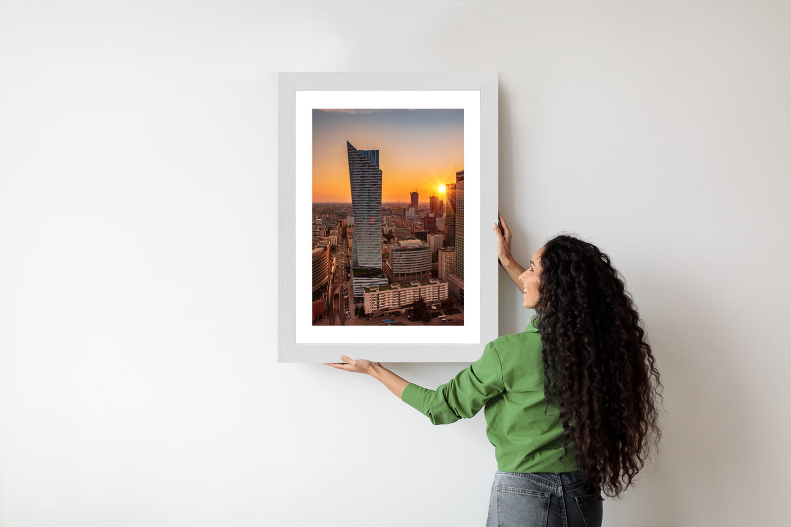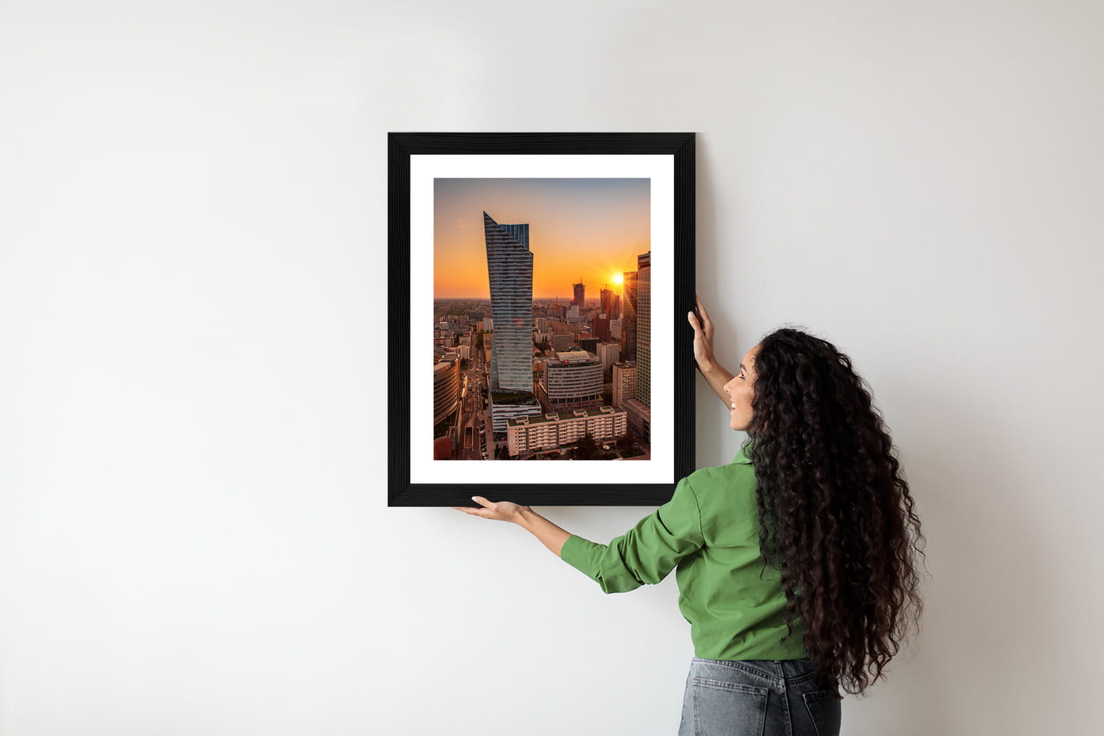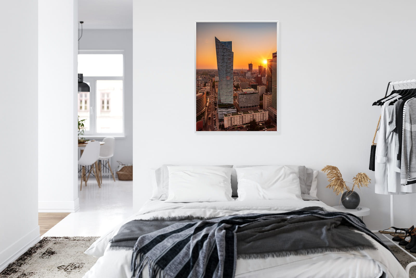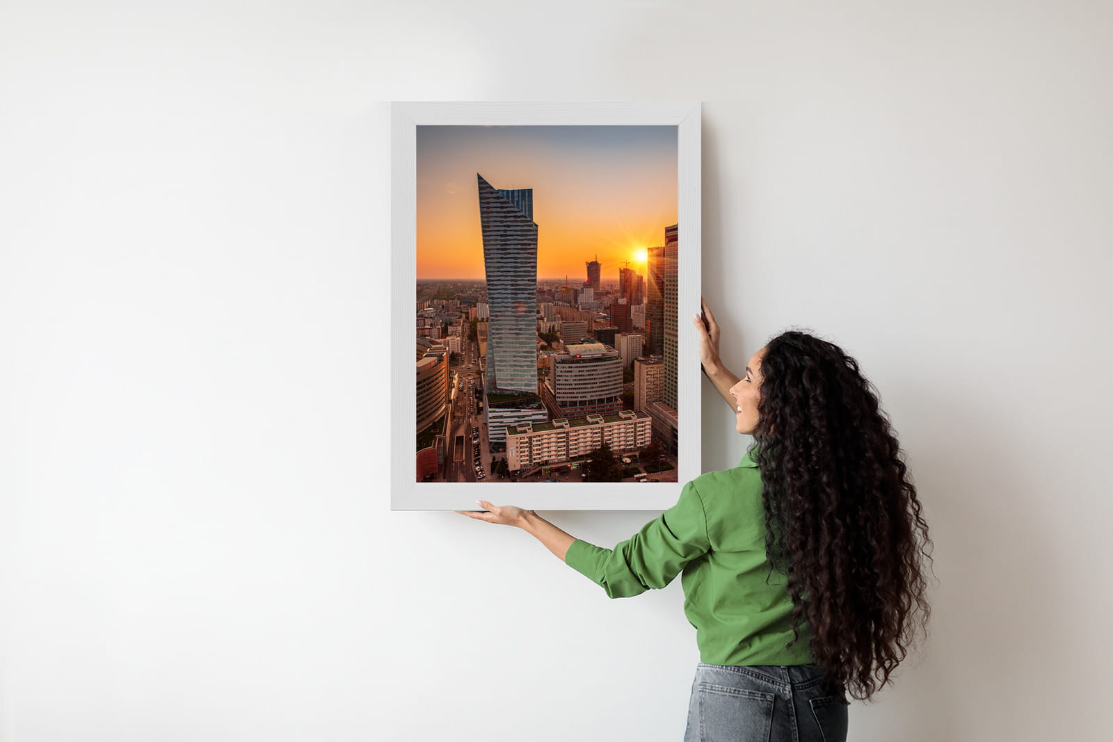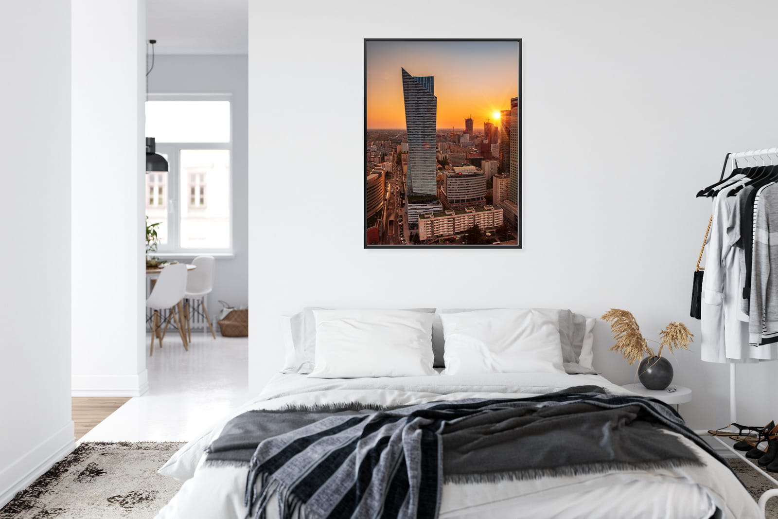 Plakat Wieżowce W Warszawie O Zachodzie Słońca