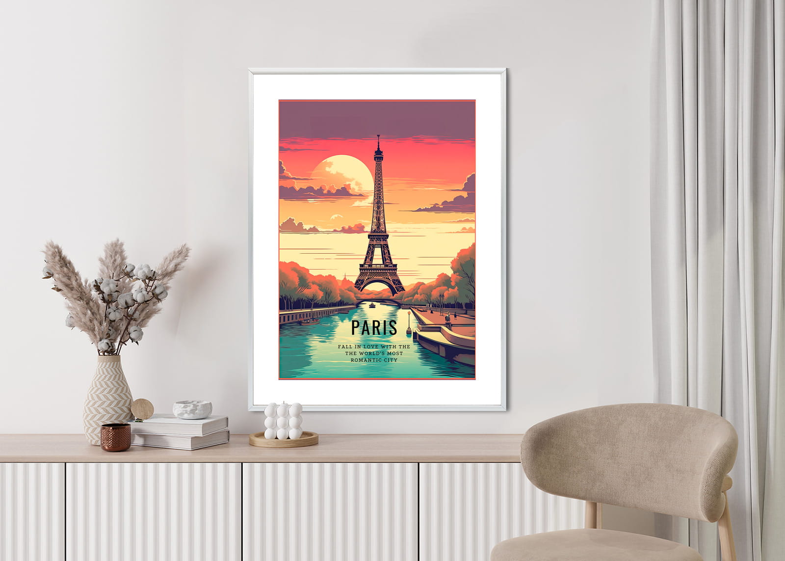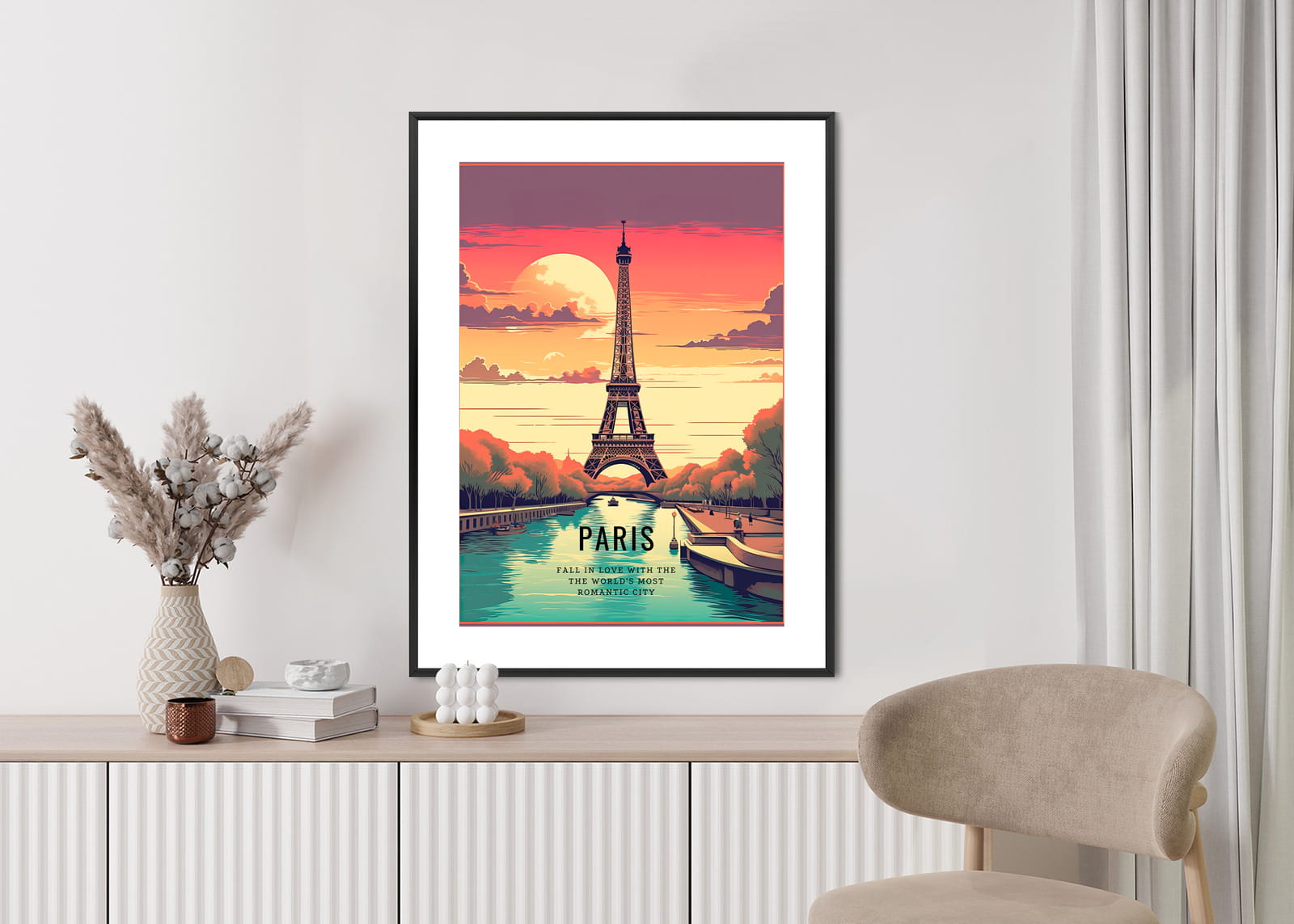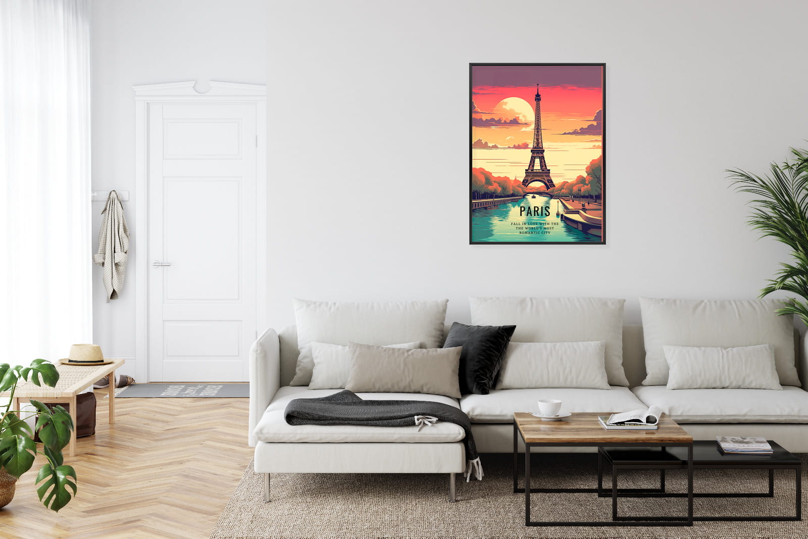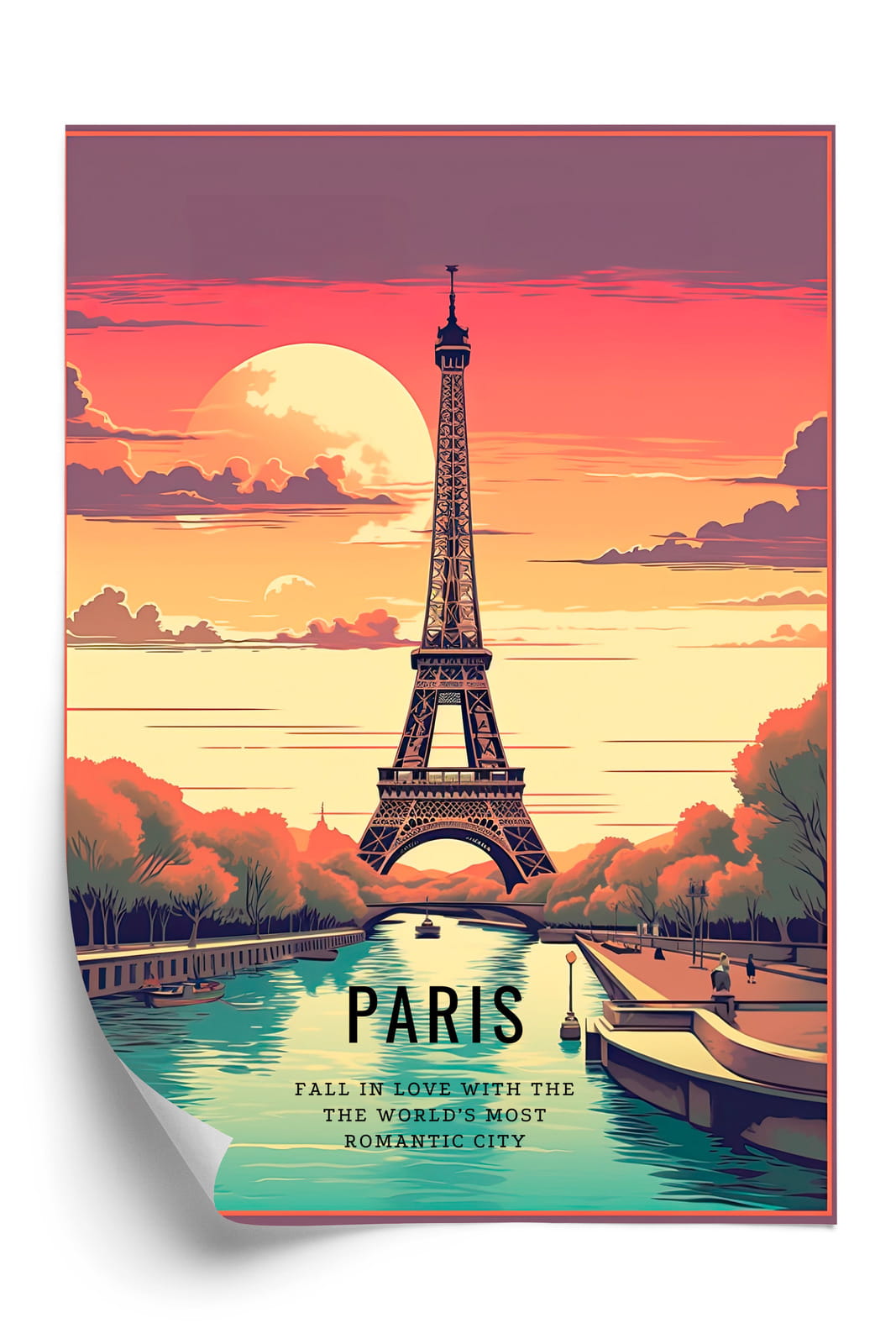 Plakat Zachód Słońca Nad Sekwaną U Stóp Wieży Eiffla