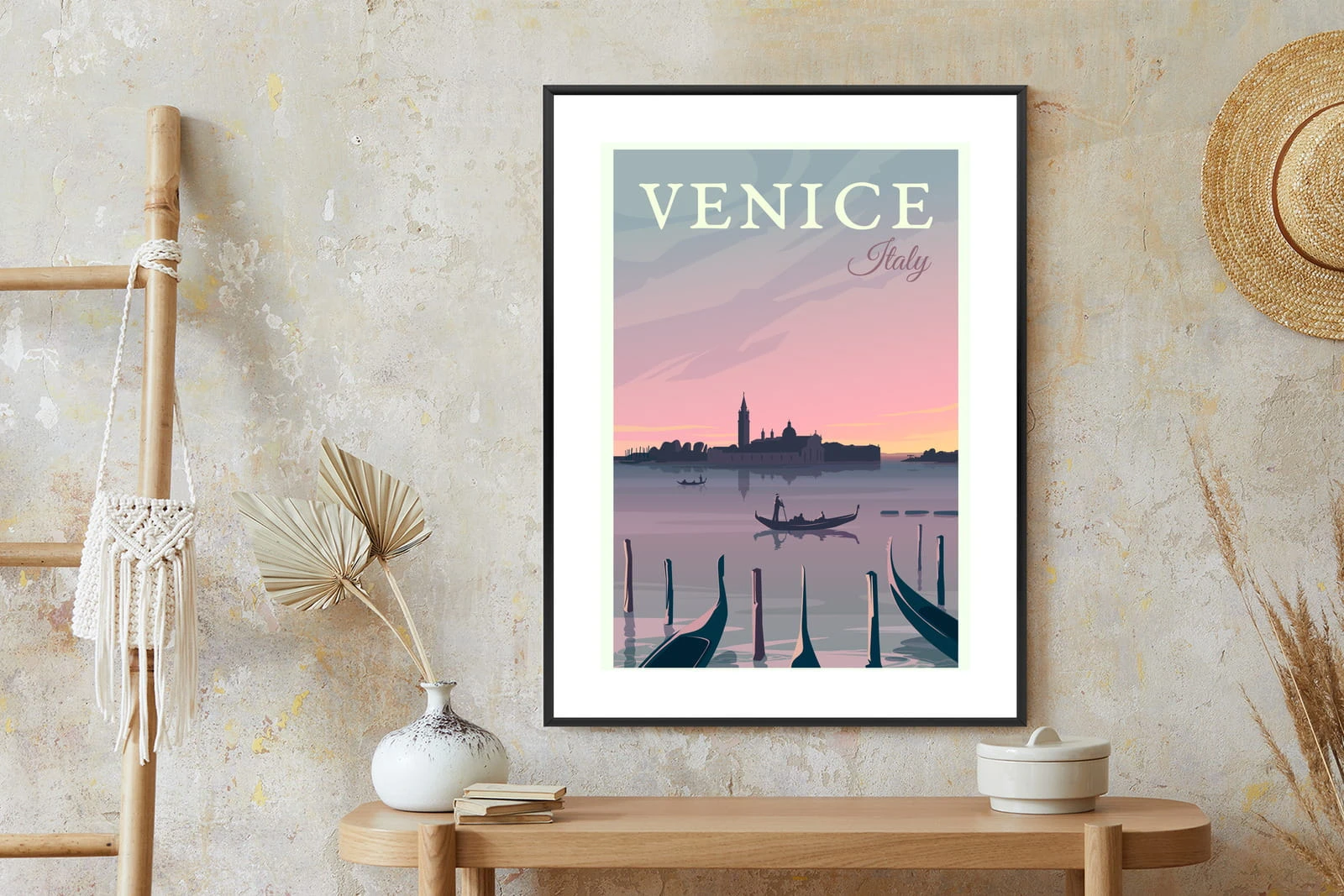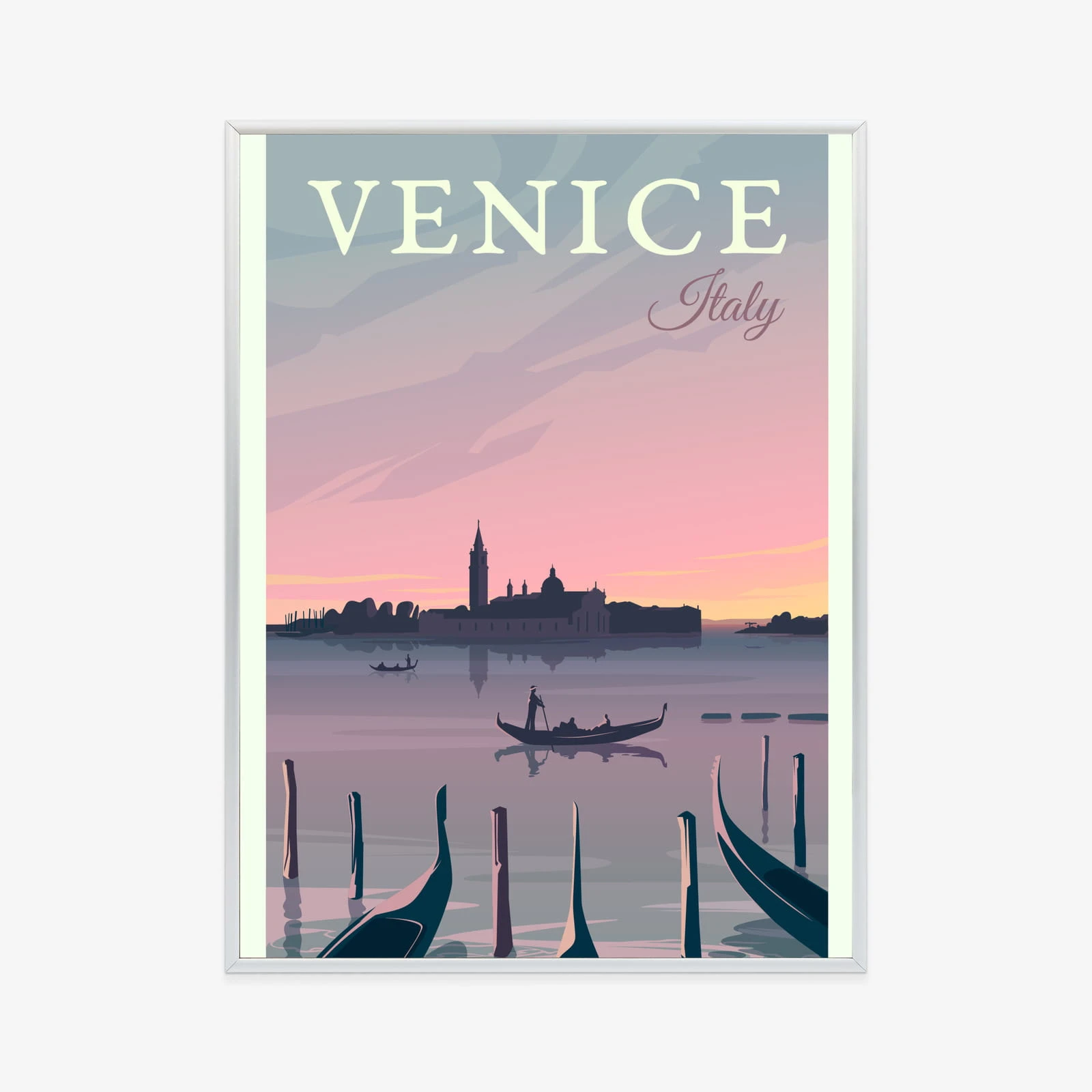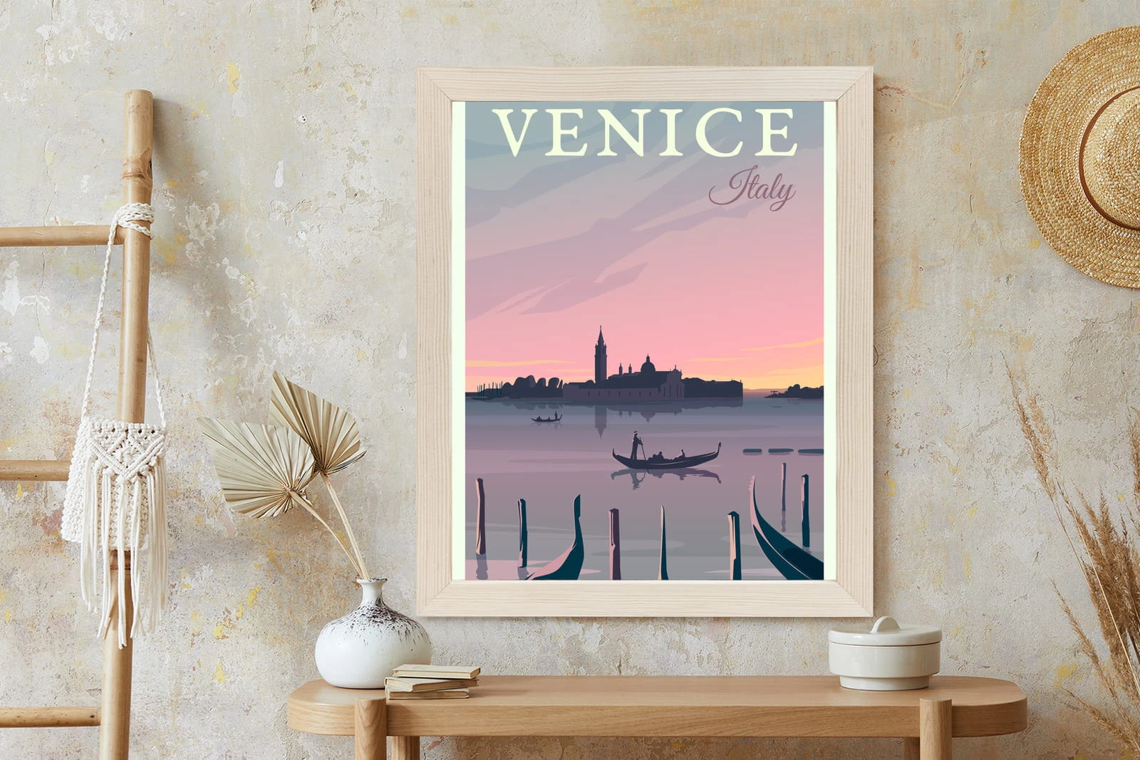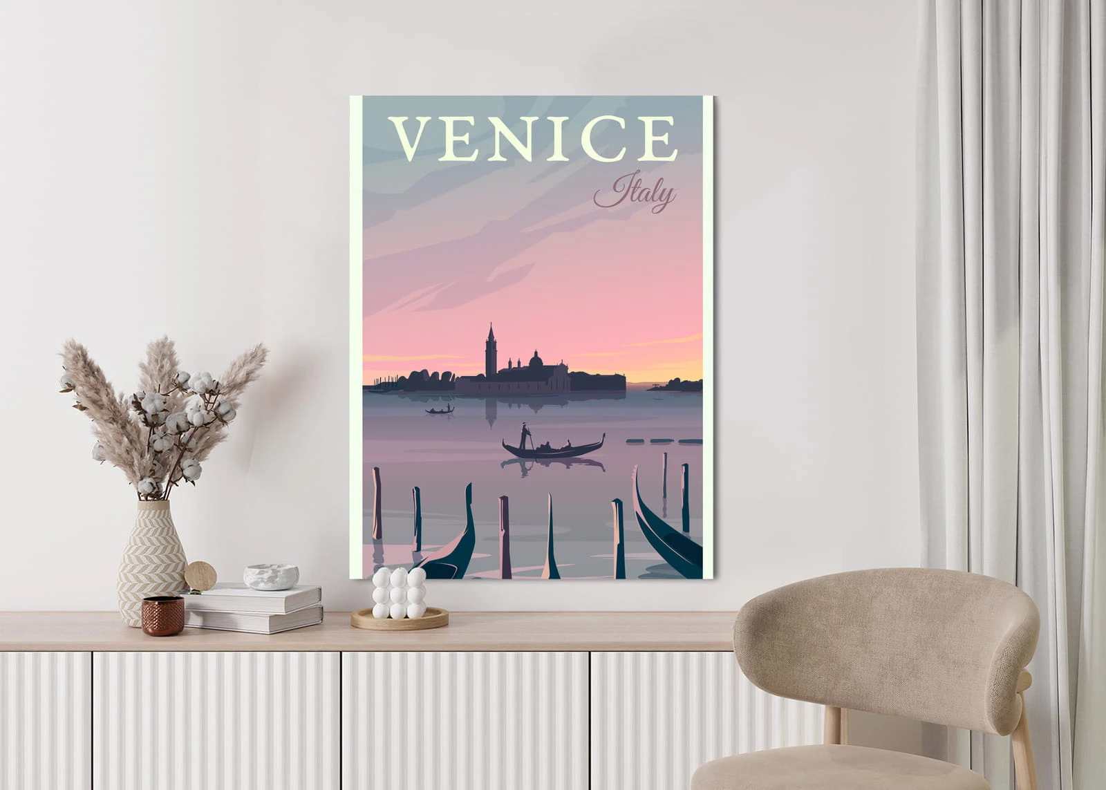Plakat Zachód Słońca W Wenecji Z Gondolami
