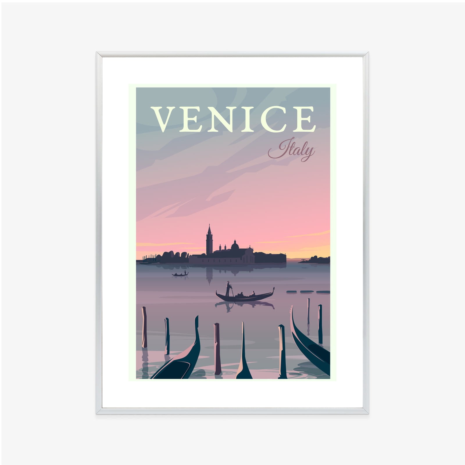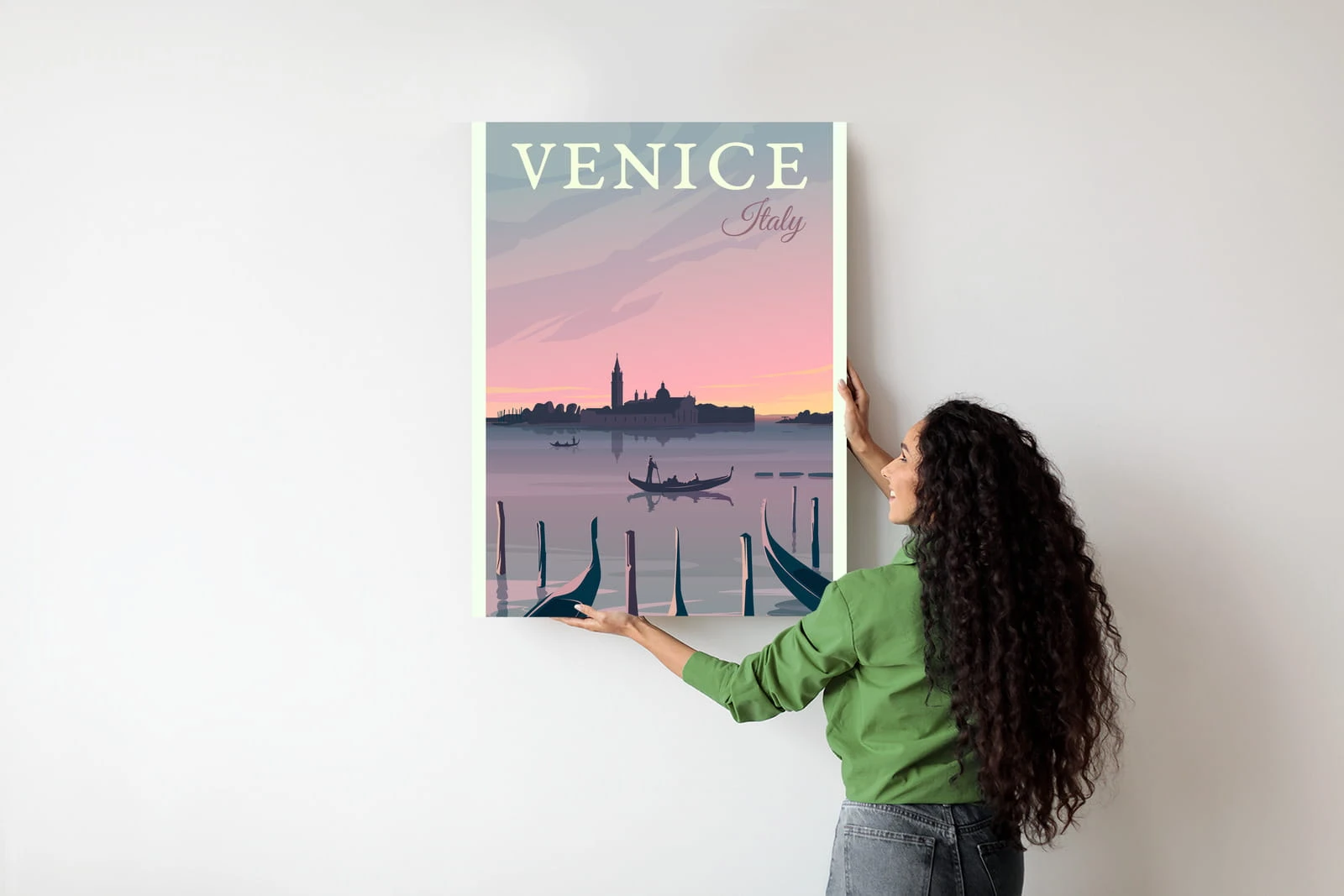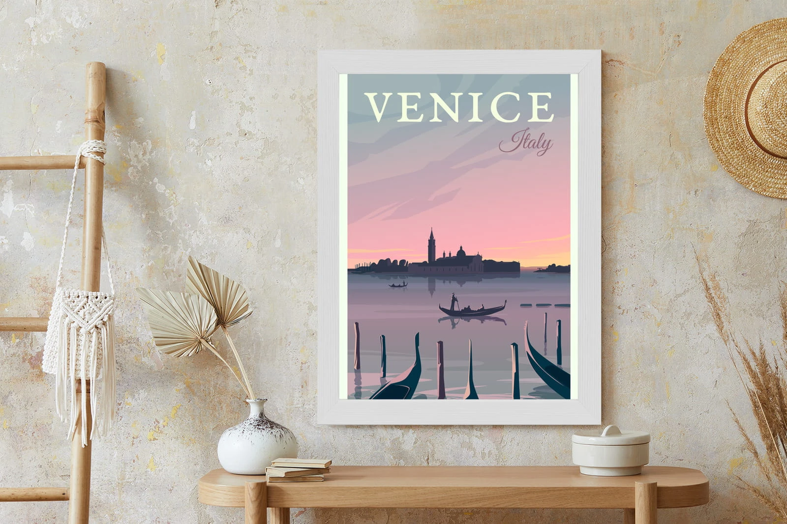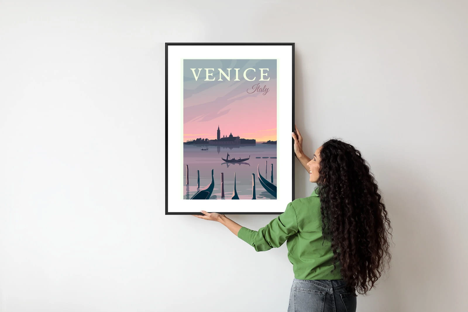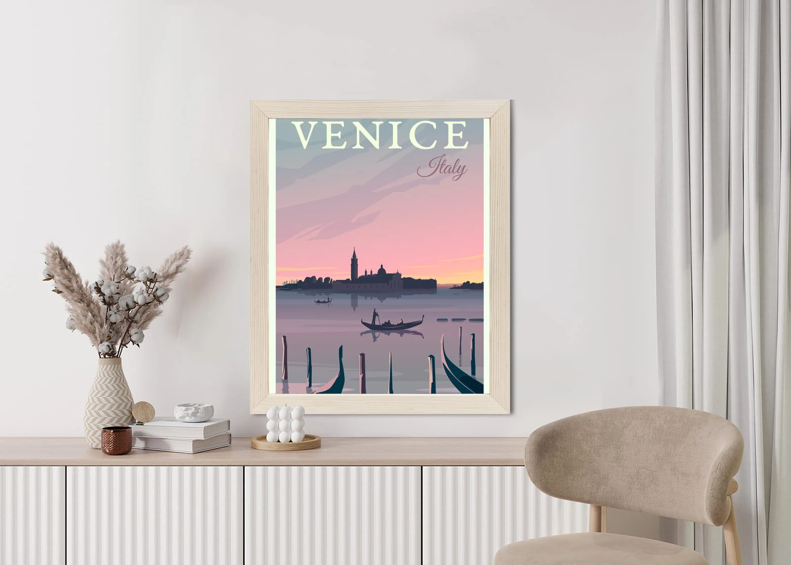 Plakat Zachód Słońca W Wenecji Z Gondolami