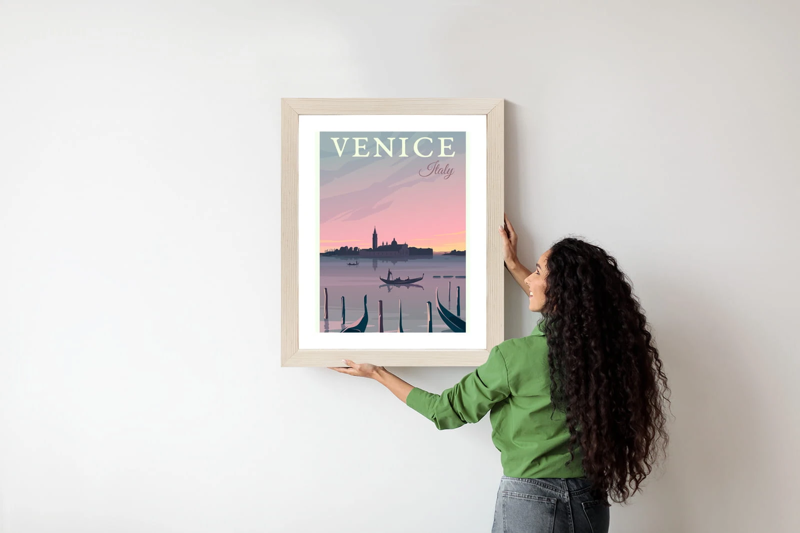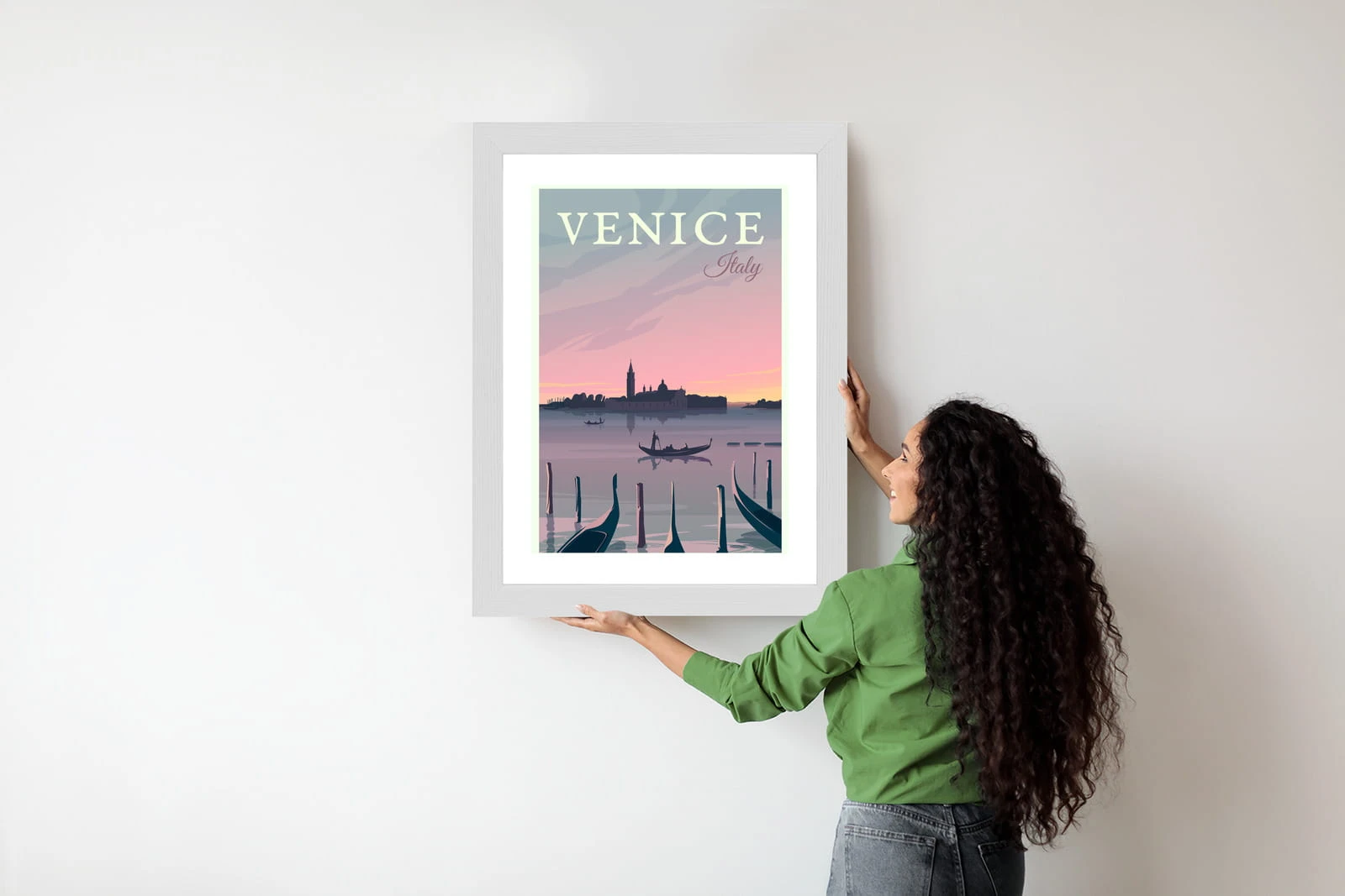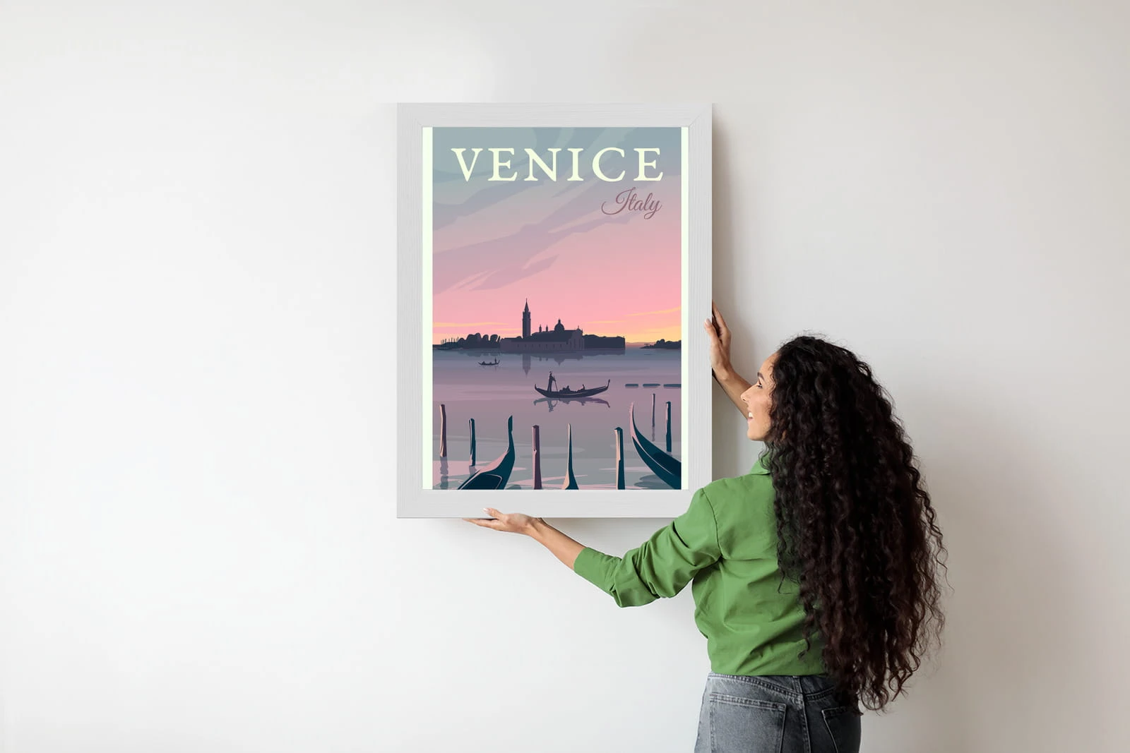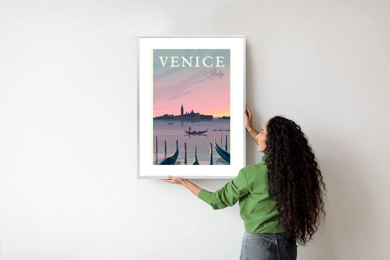Plakat Zachód Słońca W Wenecji Z Gondolami