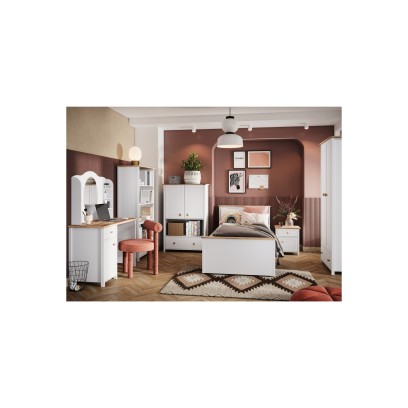 W pokoju dziewczyny ustawiono meble z kolekcji Story w kolorze białym i drewna dębowego. Cena obejmuje: