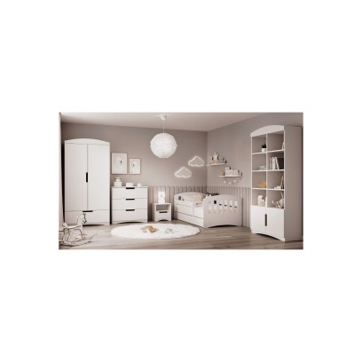 Białe meble Classic do pokoju dziecka tworzą spokojną, przytulną przestrzeń, w której maluch może spać, bawić się i uczyć pierwszej samodzielności. Jasne bryły, miękkie tekstylia, lampki w kształcie chmurek i delikatne dekoracje budują atmosferę bezpieczeństwa, a jednocześnie wyglądają „doroślej” niż typowe meble niemowlęce. To gotowy zestaw, który możesz łatwo rozbudować, gdy dziecko podrośnie.