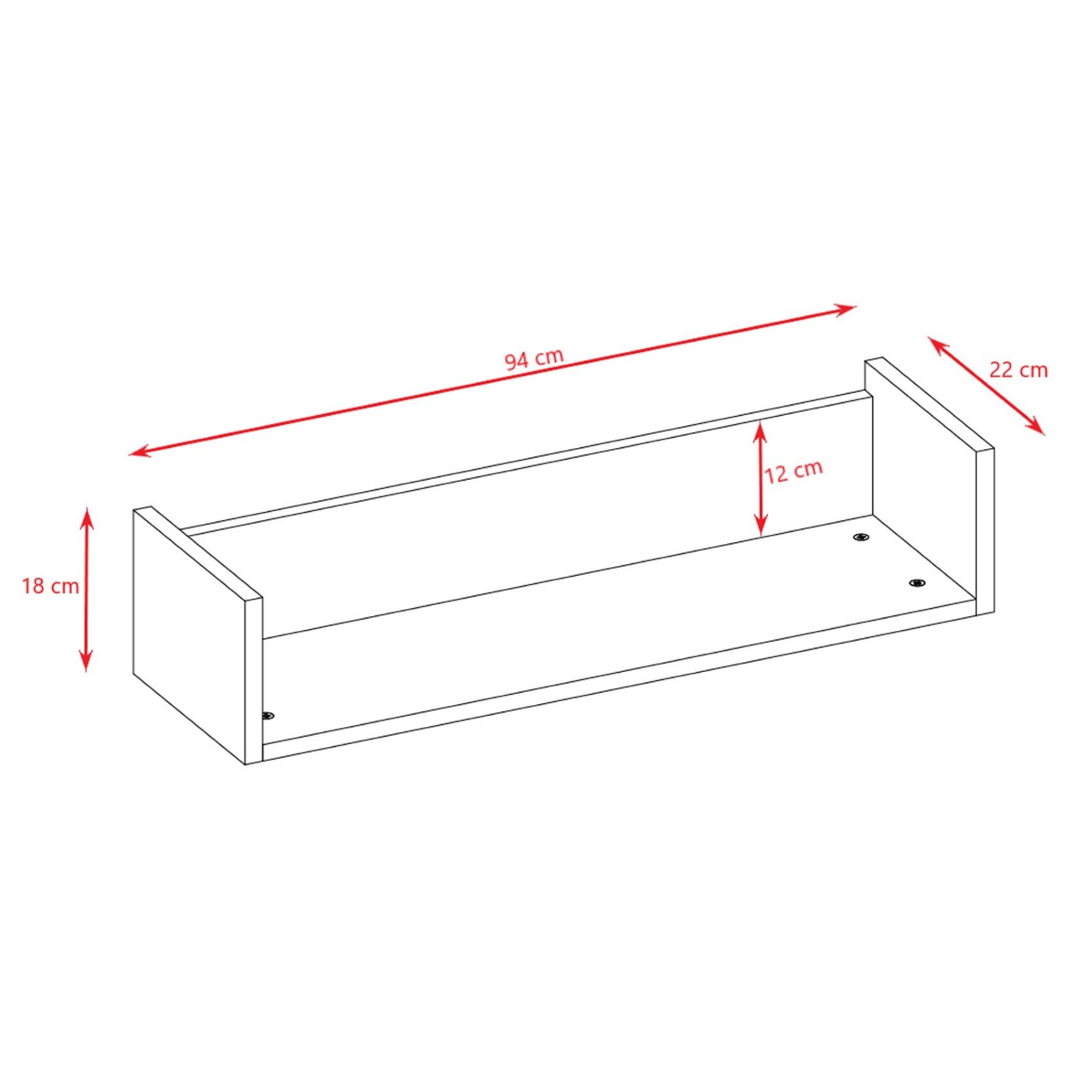 wymiary zewnętrzne: 18 / 94 / 22 cm (wys. / szer. / gł.)
