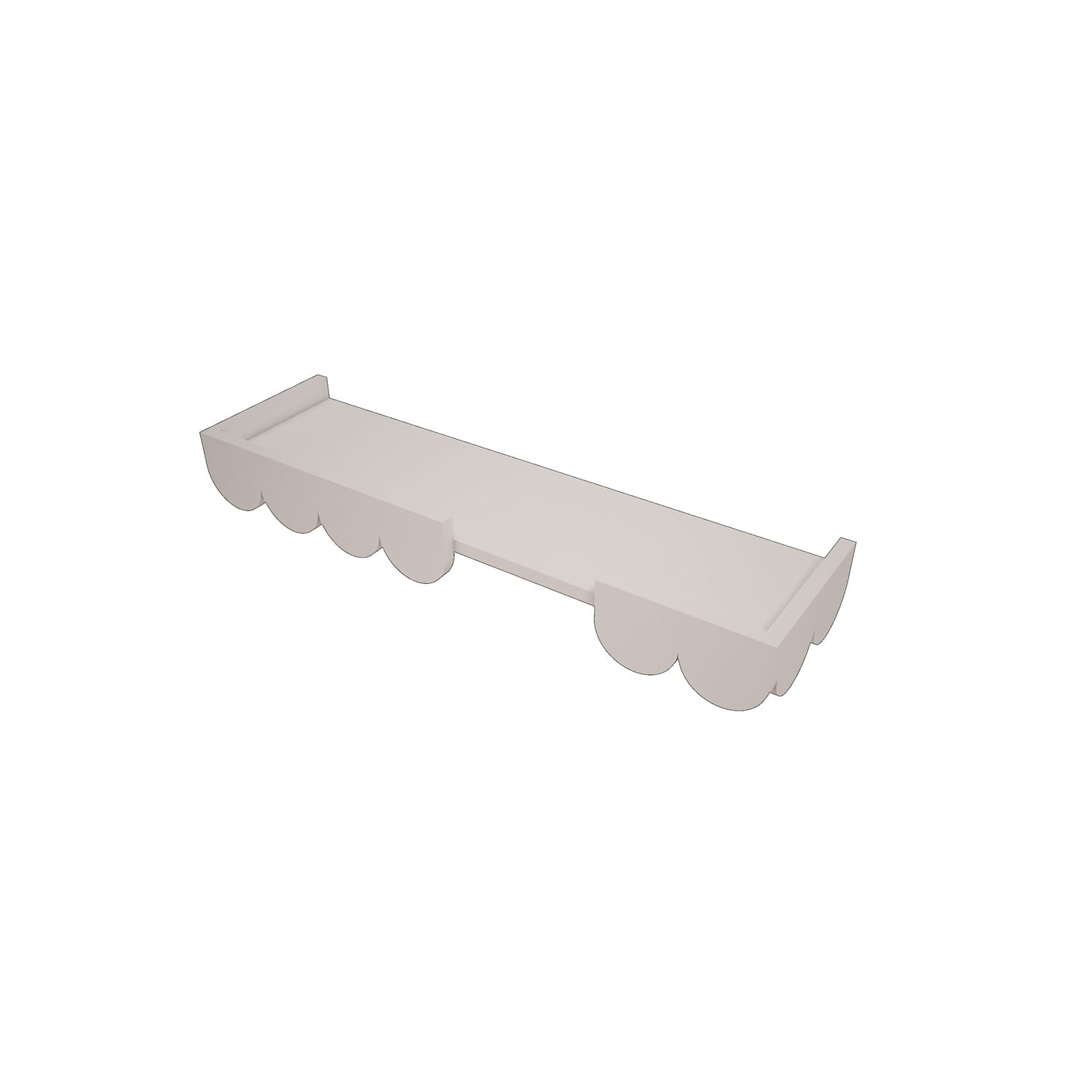 Biała półka ścienna Babushka to subtelny dodatek do pokoju córki, który świetnie uzupełnia inne meble dla dziewczynki z kolekcji Babushka. Ciepła biel (odcień zbliżony do RAL 9010) rozjaśnia wnętrze, a falbankowe wykończenie nadaje całości romantyczny, retro charakter.