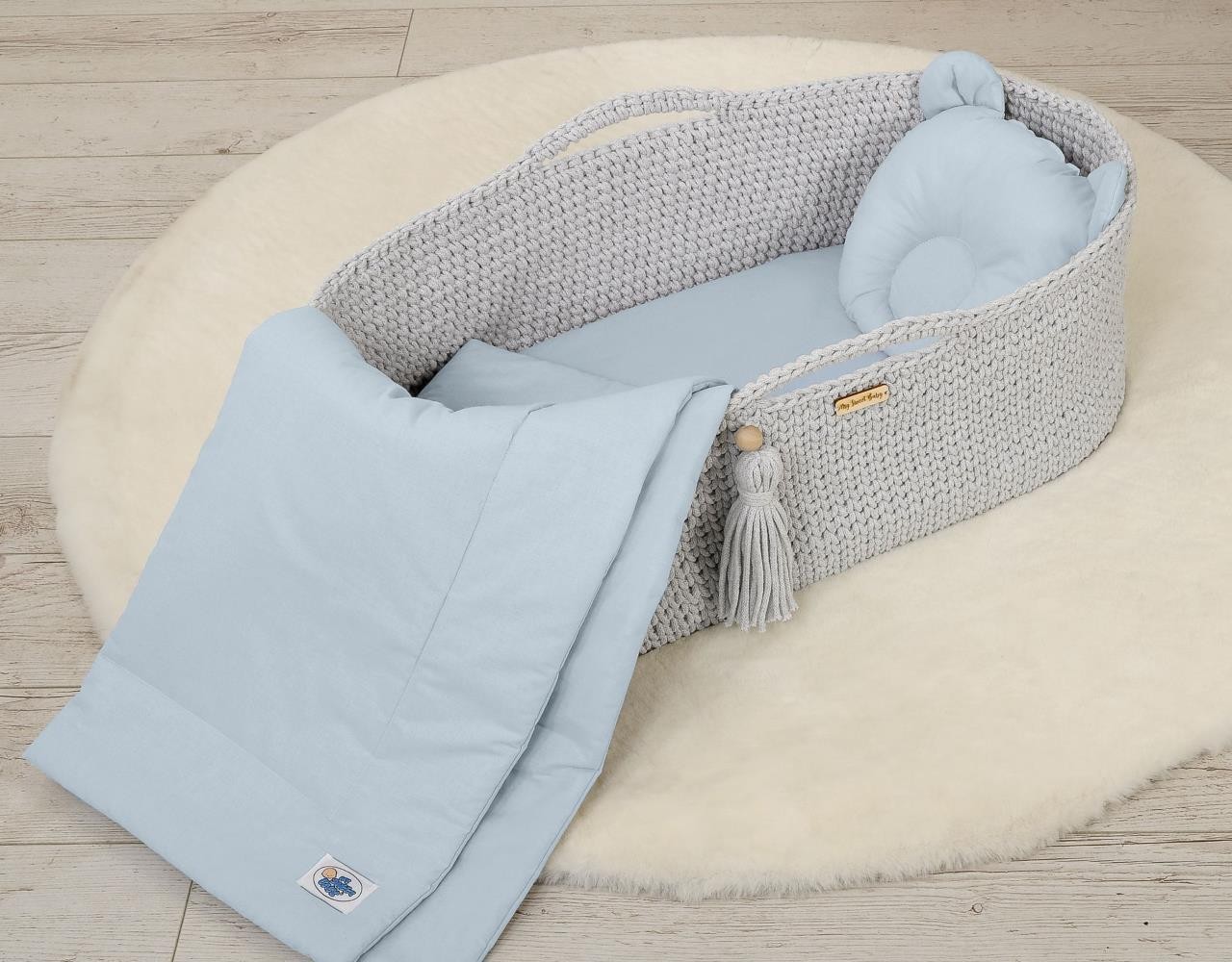 Komplet pościeli składa się z lekkiej kołderki z antyalergicznym wypełnieniem oraz profilowanej poduszeczki. Kołderka zapewnia optymalny komfort cieplny, jednocześnie nie obciążając dziecka, dzięki czemu nadaje się na każdą porę roku. Profilowana poduszeczka wspiera prawidłowe ułożenie główki maluszka, co sprzyja zdrowemu rozwojowi i zapobiega deformacjom. Całość jest łatwa w utrzymaniu czystości, co ułatwia rodzicom codzienną pielęgnację. To funkcjonalny i estetyczny dodatek do kosza Mojżesza, gwarantujący dziecku spokojny i bezpieczny sen.
