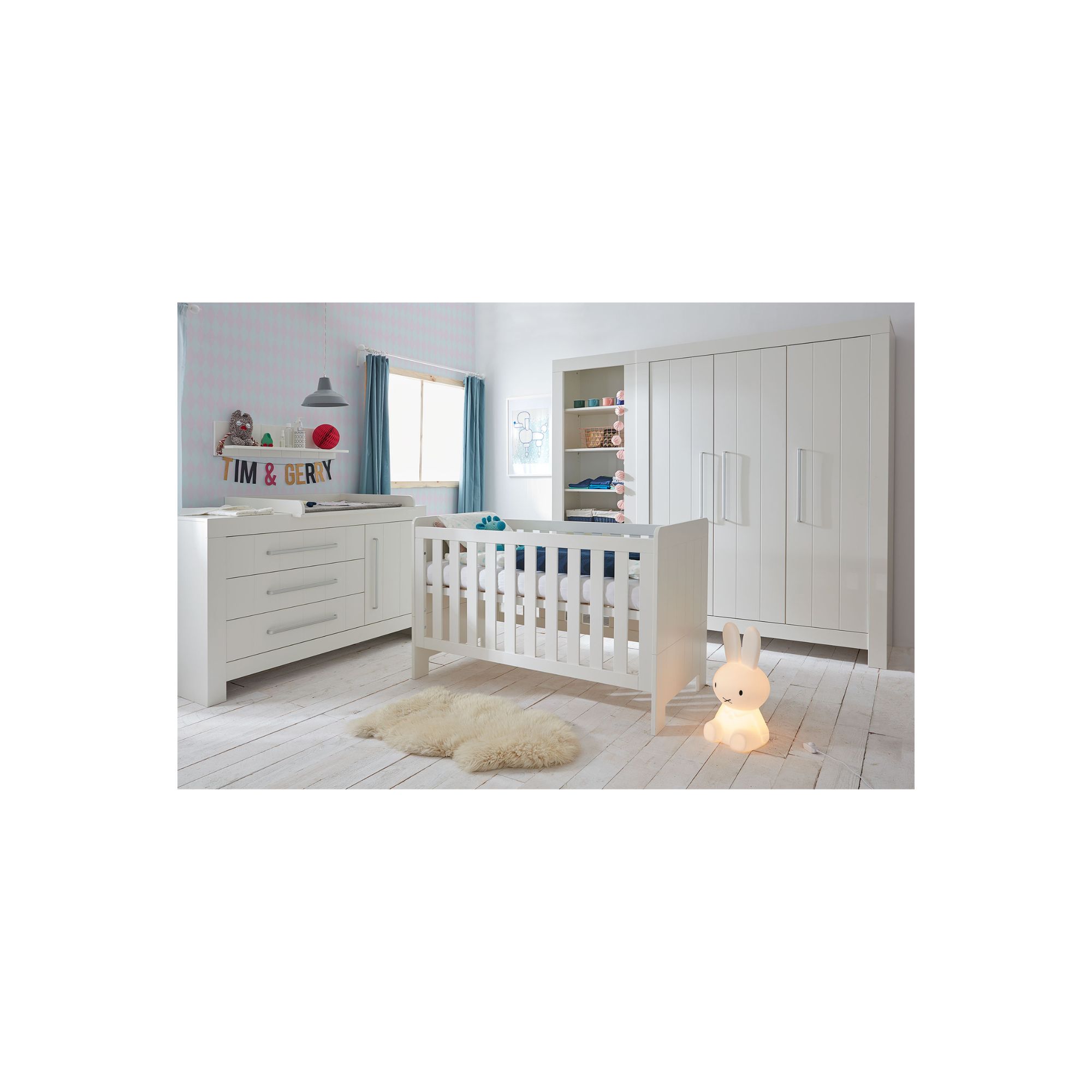W projekcie przewidziano wygodną strefę przewijania i pielęgnacji, której centrum stanowi duża komoda Calmo. Szeroki blat komody możesz uzupełnić opcjonalnym przewijakiem, tworząc ergonomiczne miejsce do codziennych rytuałów pielęgnacyjnych. Głębokie szuflady i szafka mieszczą ubranka, pieluszki oraz kosmetyki, dzięki czemu wszystko, czego potrzebujesz, jest zawsze pod ręką. Gdy przewijak nie będzie już potrzebny, komoda pozostaje pełnowartościowym, eleganckim meblem na lata.