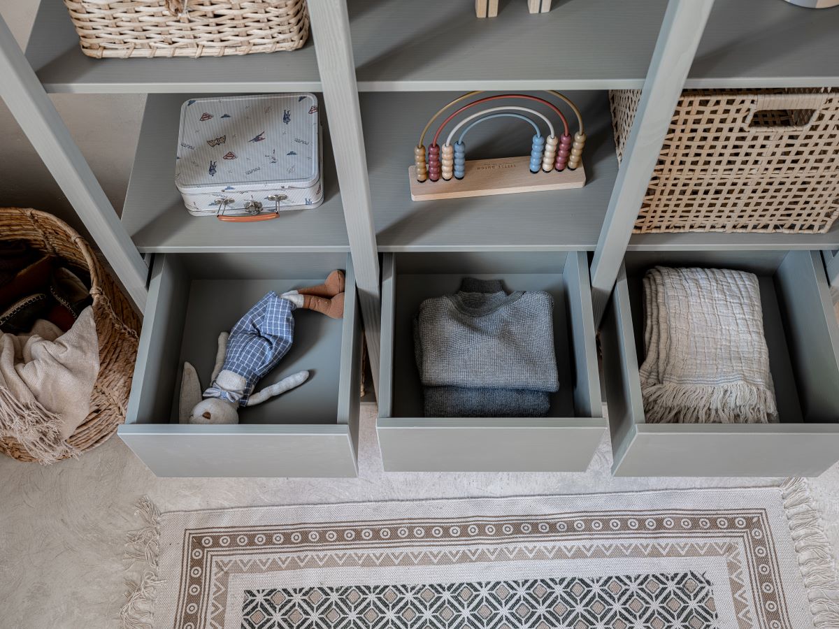 Funkcjonalność: otwarte półki i dolne szuflady na zabawki, tekstylia i drobiazgi