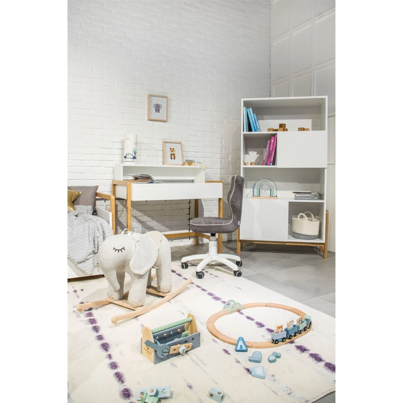 stabilna konstrukcja z płyty laminowanej i litego drewna dobrze znosi codzienne użytkowanie w pokoju dziecka.