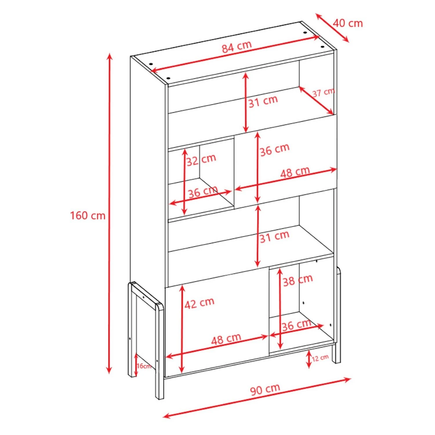 2 otwarte półki: 36 × 37 cm