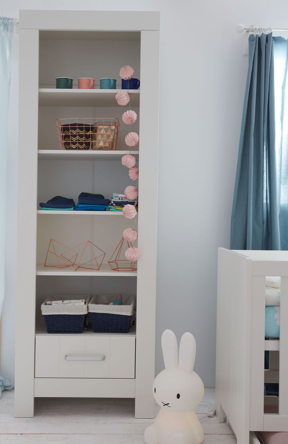 Neutralna kolorystyka regału Calmo sprawia, że mebel łatwo dopasujesz do różnych etapów dorastania: