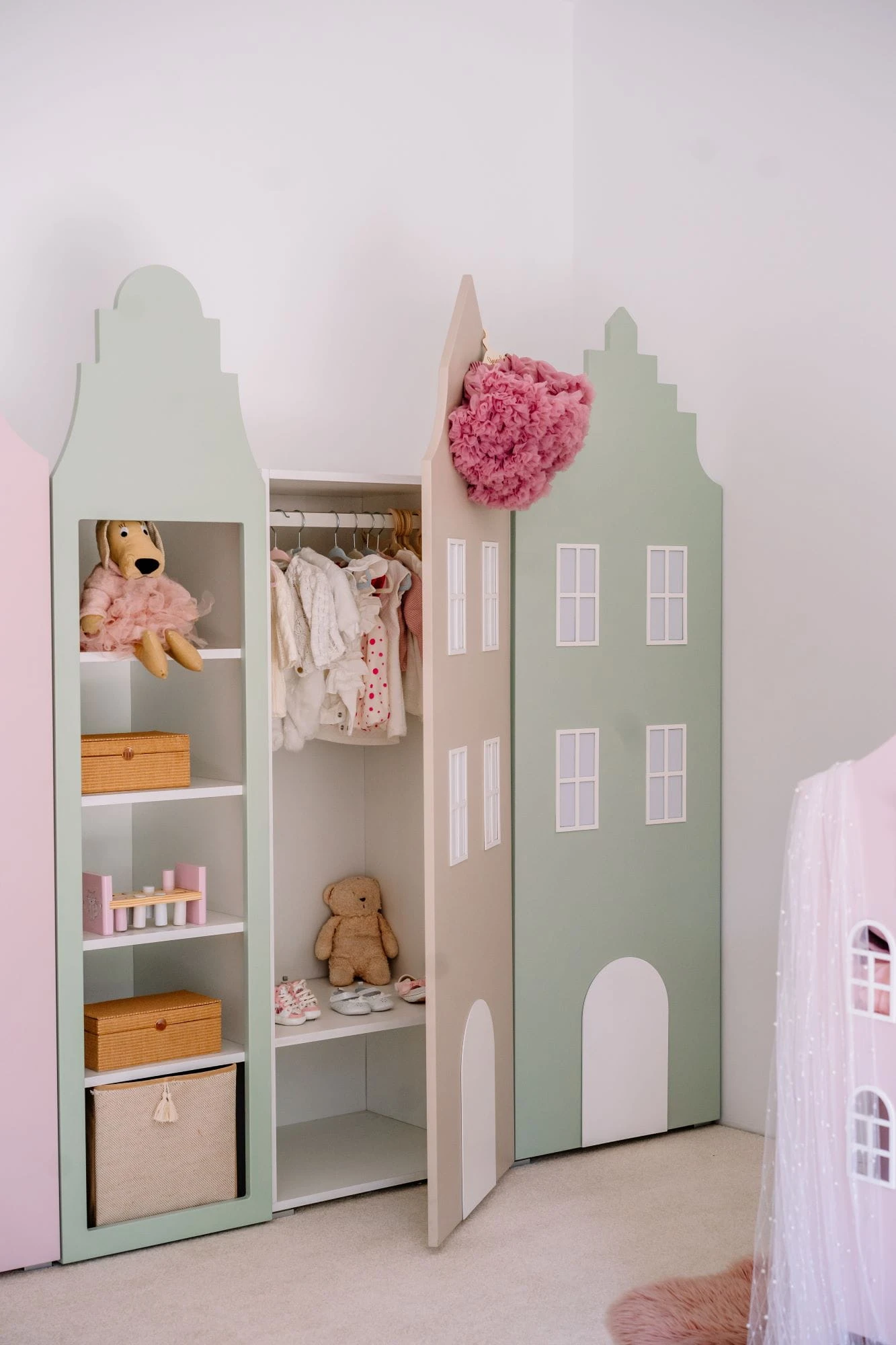 Regał domek do pokoju dziecięcego, który swoim urokiem skradnie serce niejednego malucha. Fasada regału, niczym kamieniczka średniowiecznych ryneczków, zachęca do poukładania dziecięcych skarbów. Meble domki są marzeniem wielu dzieci, dzięki którym ich pokoje zamieniają się w zaczarowaną, baśniową krainę. Regał kamieniczka Kraków, jak Brama Floriańska otwiera dziecięcy świat wyobraźni i kreatywnych zabaw!