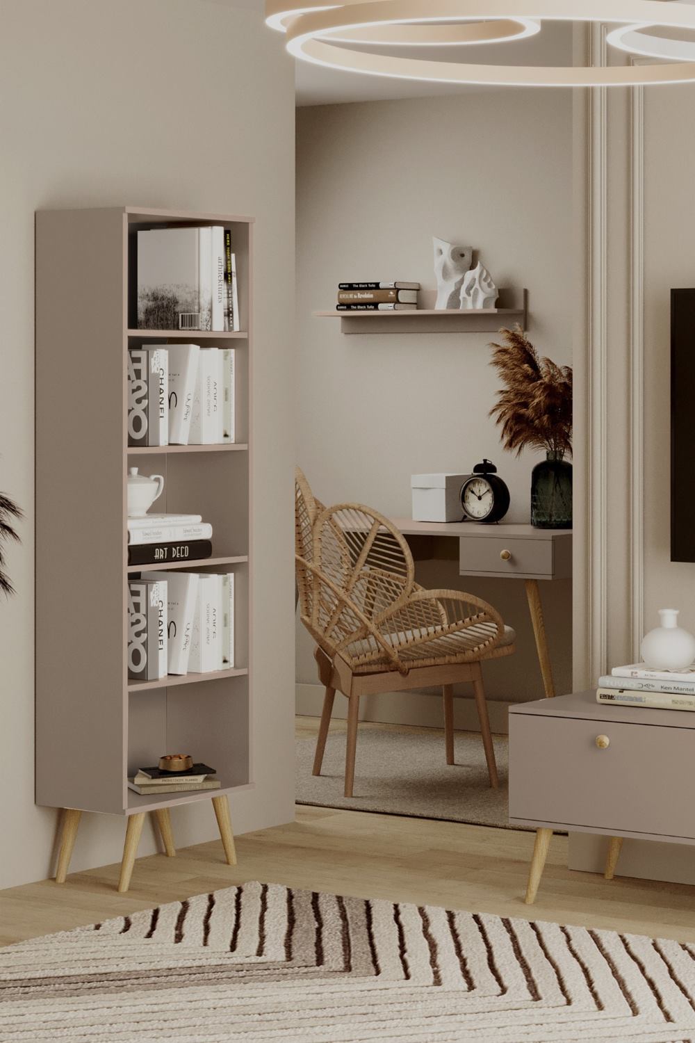 Regał półka - Millea macchiato to wyjątkowy mebel stworzony z myślą o pokoju dziewczynki, który łączy funkcjonalność z eleganckim designem. Jego subtelny odcień macchiato nadaje wnętrzu ciepła i przytulności, wprowadzając jednocześnie nutę nowoczesnej elegancji. Regał ten wyróżnia się prostą i lekką formą, która doskonale wpasowuje się w różnorodne aranżacje, od minimalistycznych po bardziej klasyczne.