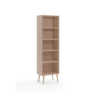 Regał Millea wyposażony jest w cztery półki z możliwością regulacji wysokości, co pozwala na łatwe dostosowanie przestrzeni do indywidualnych potrzeb dziecka. Na półkach można z powodzeniem przechowywać książki, zabawki, dekoracje, czy inne przedmioty, pomagając utrzymać porządek w pokoju. Nogi regału wykonane są z litego drewna, co zapewnia mu stabilność oraz trwałość, a jednocześnie dodaje naturalnego, ciepłego akcentu, harmonizującego z kolorem macchiato.