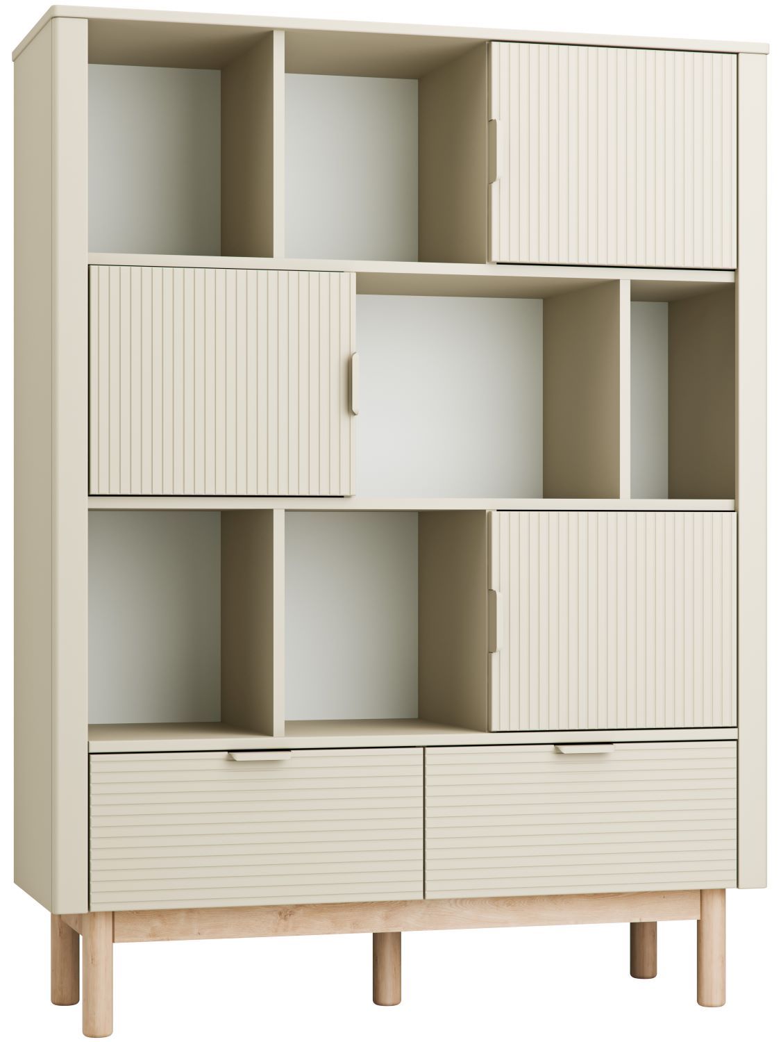 Regał szeroki Miloo możesz uzupełnić o komplet trzech szampańskich drzwiczek. Dzięki nim: