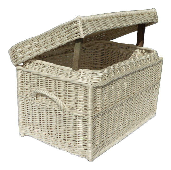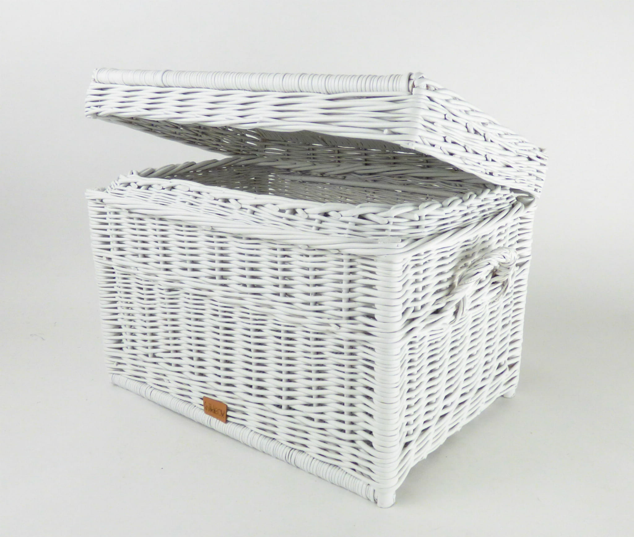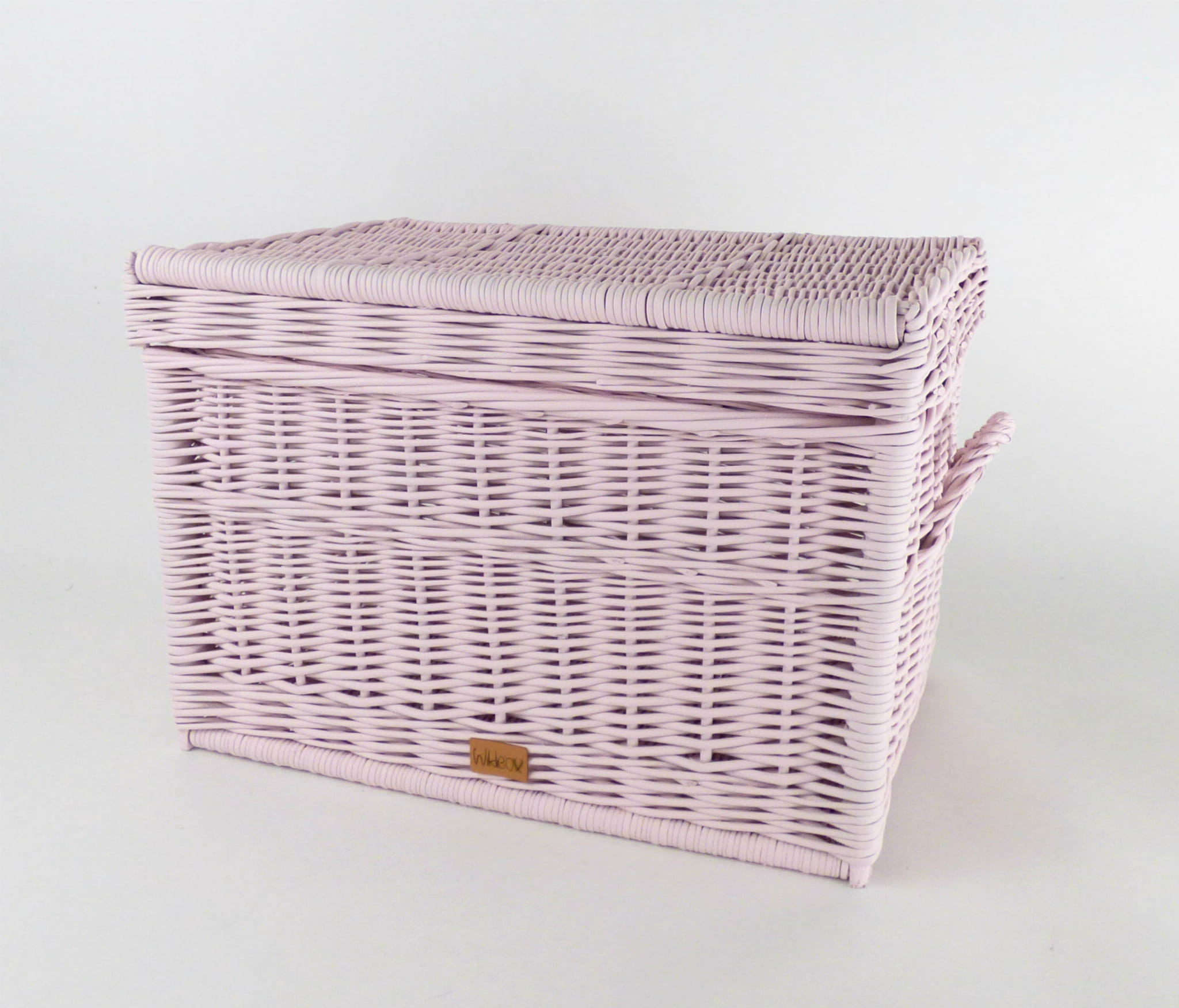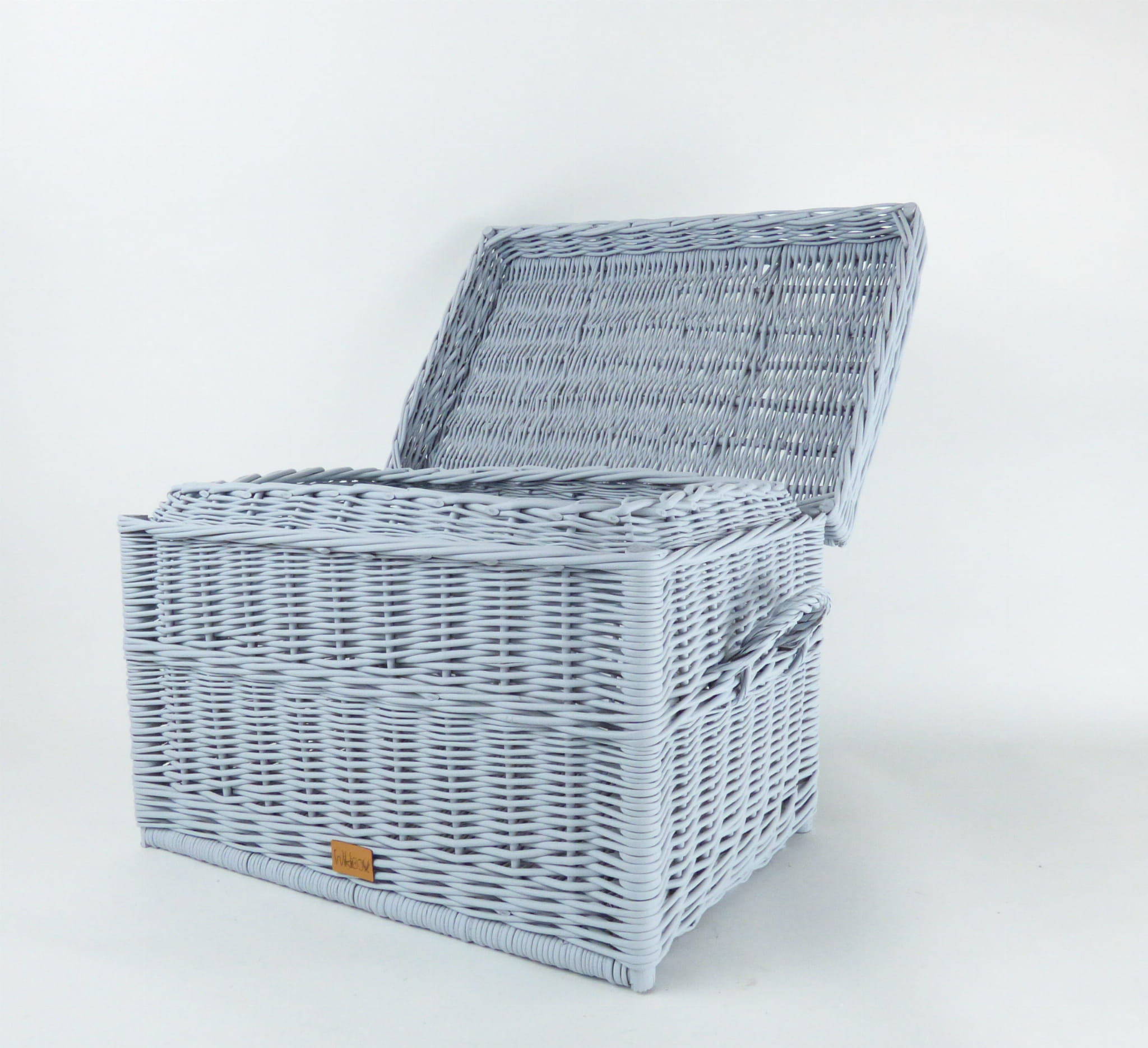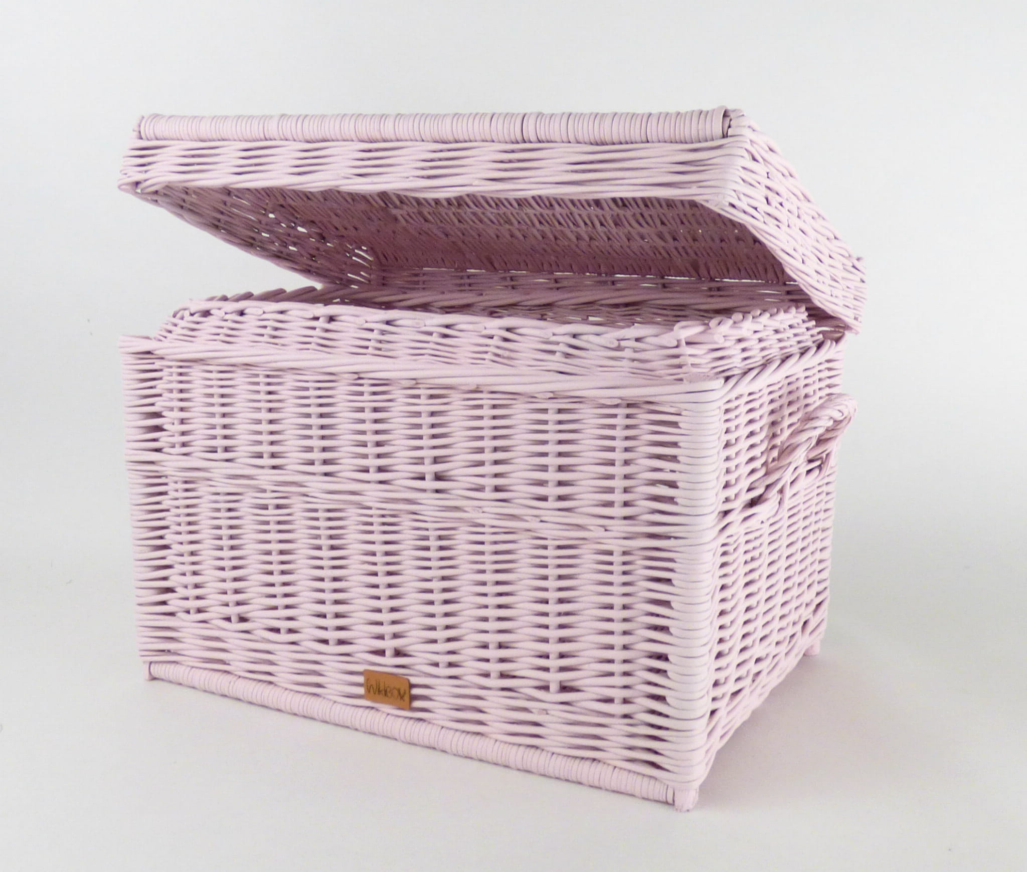 Wiklinowa skrzynia na zabawki będąca ślicznym i praktycznym elementem wyposażenia pokoju dziecka. Ręcznie wyplatana wiklinowa skrzynia, która pomieści dziecięce skarby, a zamknięta posłuży także za wygodne siedzisko. Skrzynia posiada z obu stron wytrzymałe uchwyty, które pozwalają ją przenieść i ustawić w wybranym miejscu. Skrzynia na zabawki dostępna jest w pięknych pastelowych odcieniach, a jej uniwersalny kształt pozwala ustawić ją zarówno w pokoju dziewczynki, jak i chłopca. Solidne i precyzyjne wykonanie gwarantuje radość z użytkowania skrzyni przez wiele lat.
