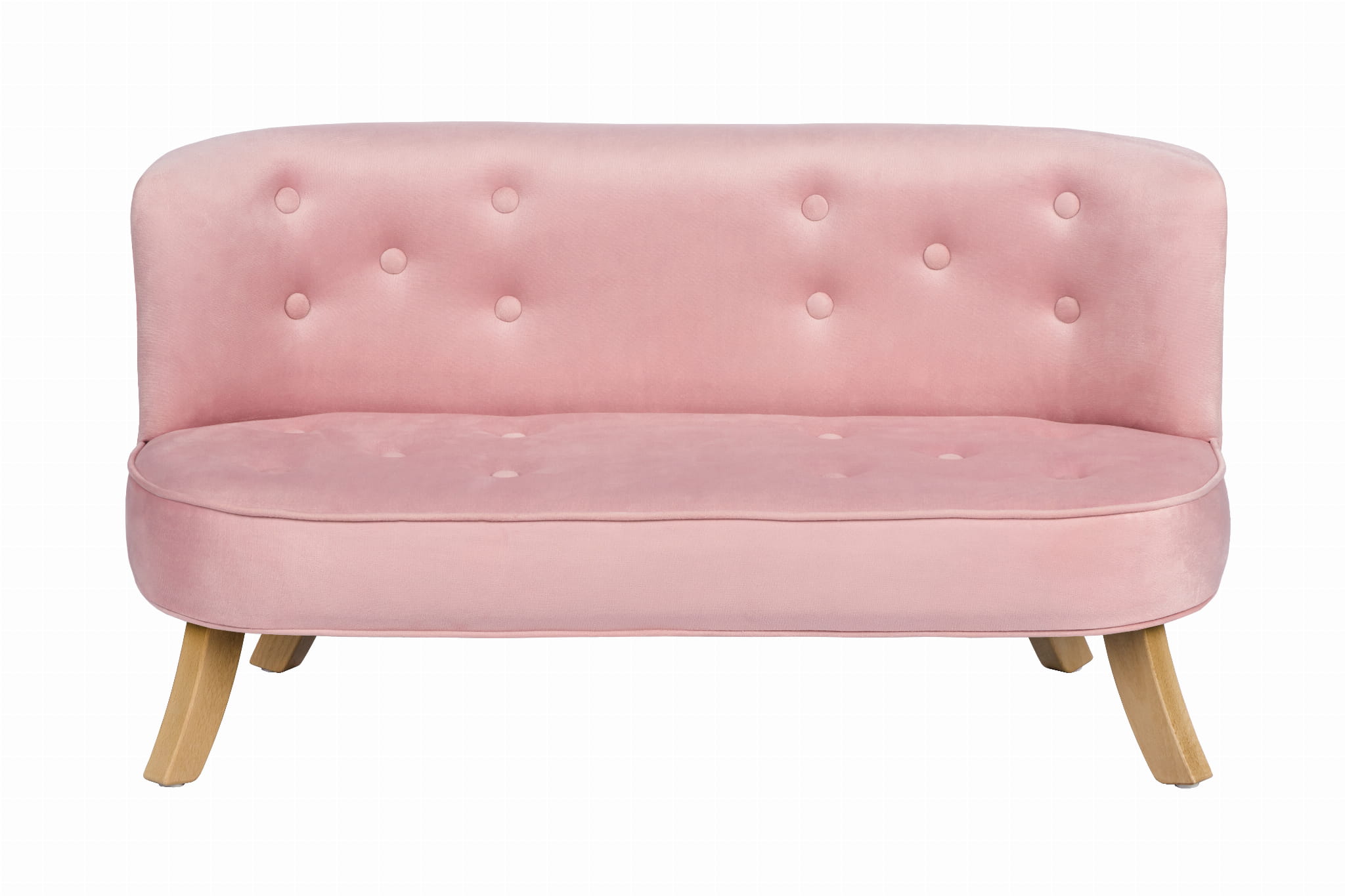 Sofa dziecięca z welurowym wykończeniem i drewnianymi nóżkami
