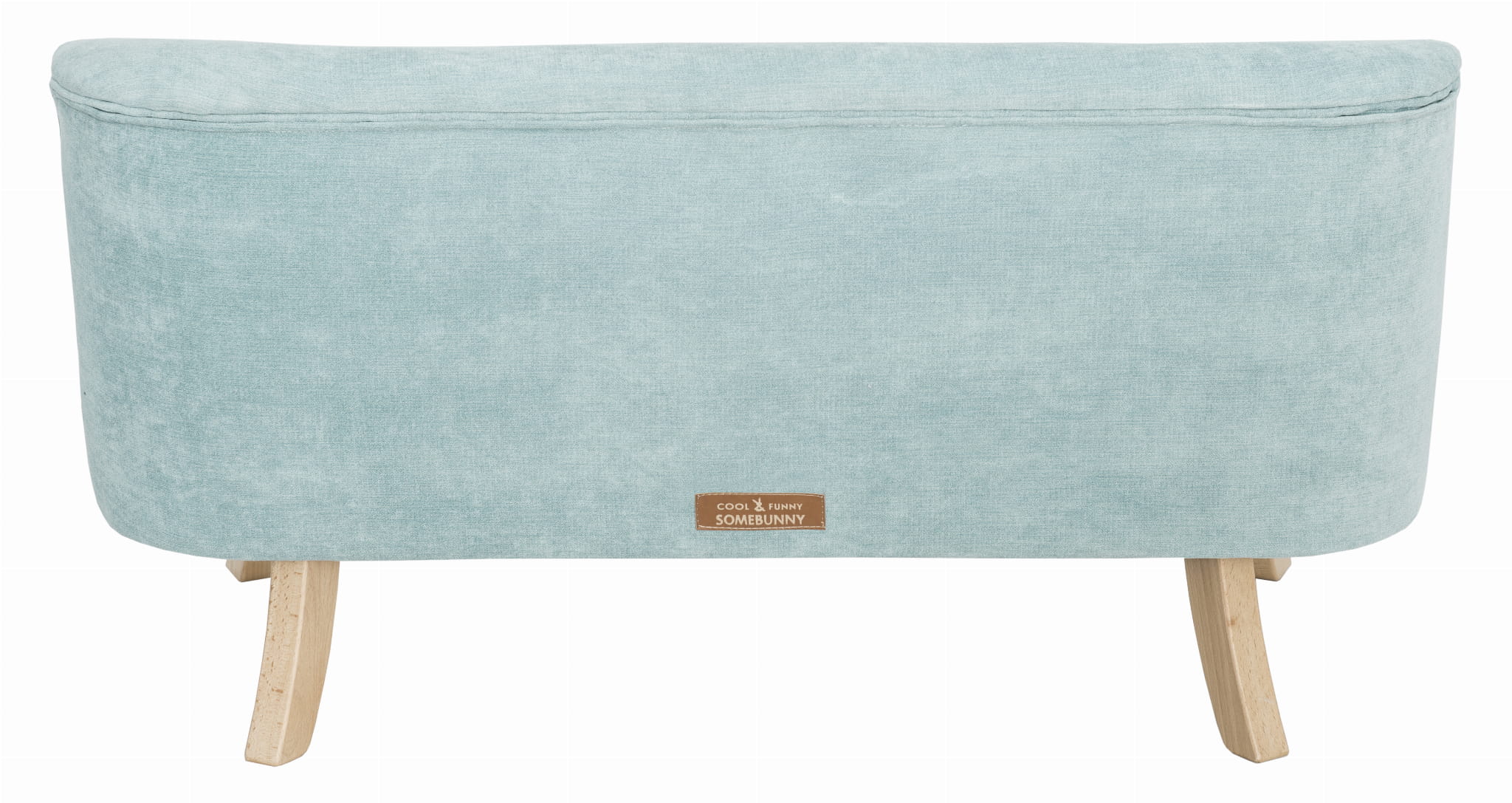 Wysokość nóżek 17 lub 25 cm pozwala wybrać wariant lepiej odpowiadający planowanej aranżacji. Całość prezentuje się lekko, a zaokrąglona linia mebla sprawia, że sofa dobrze wygląda zarówno jako pojedynczy akcent, jak i element większej kompozycji z dziecięcym stolikiem, regałem czy półką na książki.
