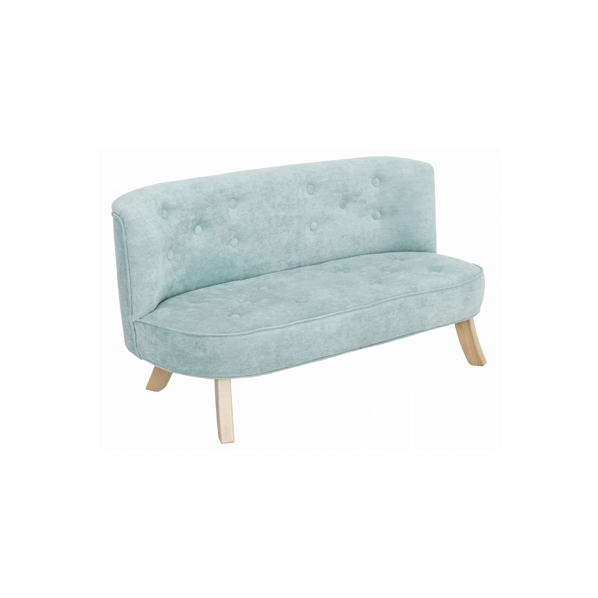 Sofa dla dziecka welurowa w brudnym błękicie – do przytulnego pokoju dziecka