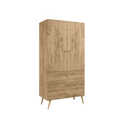 Szafa Millea w kolorze dąb craft to stylowy i funkcjonalny mebel, idealny do pokoju dziewczyny, łączący ciepło naturalnego drewna z nowoczesnym designem. Jej przemyślana konstrukcja oferuje trzy pojemne szuflady, idealne do przechowywania bielizny, akcesoriów i innych drobnych elementów garderoby. Górna część szafy wyposażona jest w drążek na wieszaki, który zapewnia przestrzeń na sukienki, bluzki czy kurtki, a dolna półka świetnie nadaje się na pojemniki i organizery, pomagając utrzymać porządek.