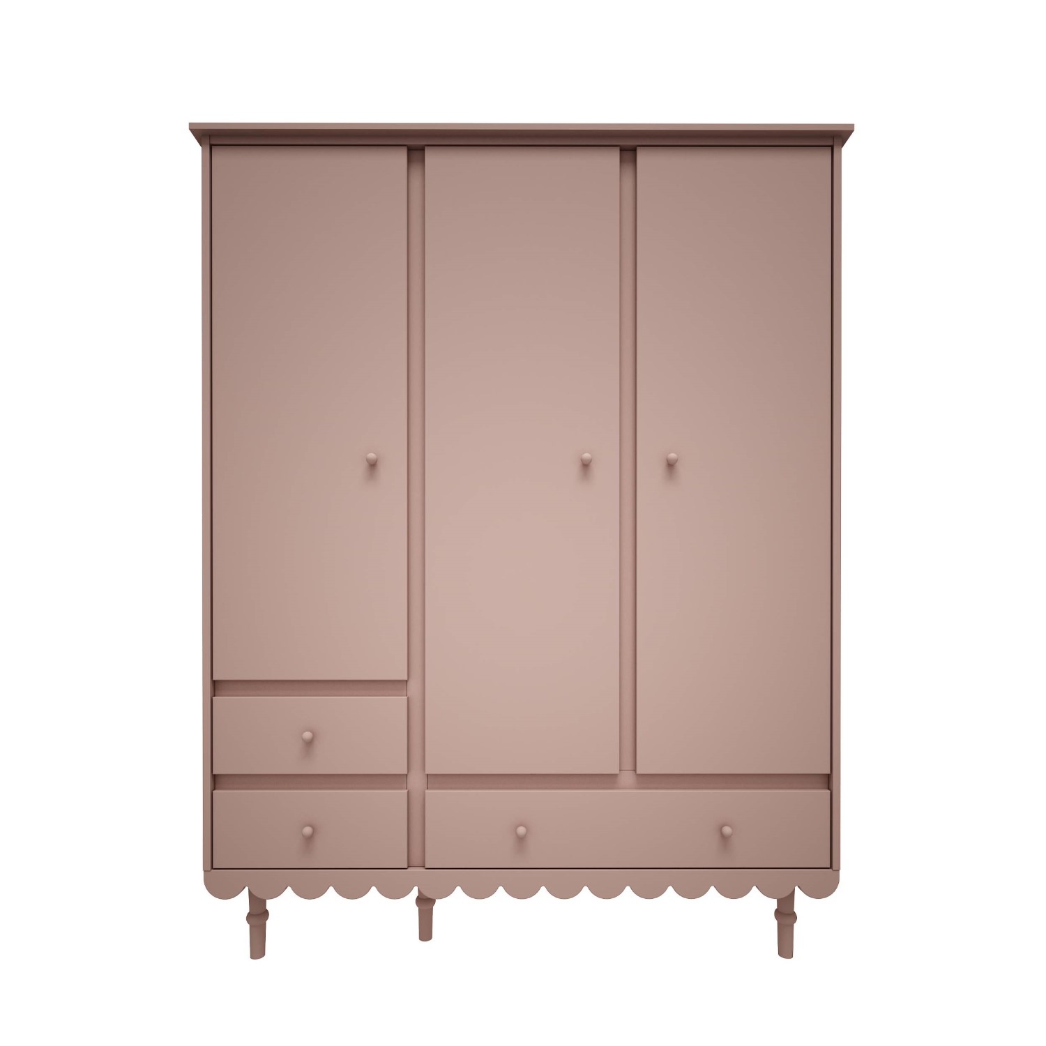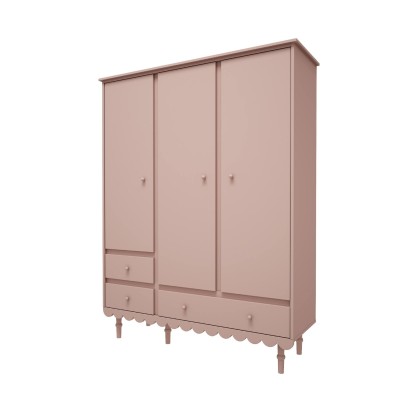 Szafa dla dziewczynek Babushka różowa to duża, 3-drzwiowa szafa w stylu retro, która pomieści całą garderobę małej dziewczynki i nastolatki. Pastelowy róż naturalny NCS S 2020-Y80R ociepla wnętrze, dodaje mu romantycznego charakteru i świetnie pasuje do innych mebli dla dziewczynek z kolekcji Babushka – łóżka, biurka, komód i regałów.
