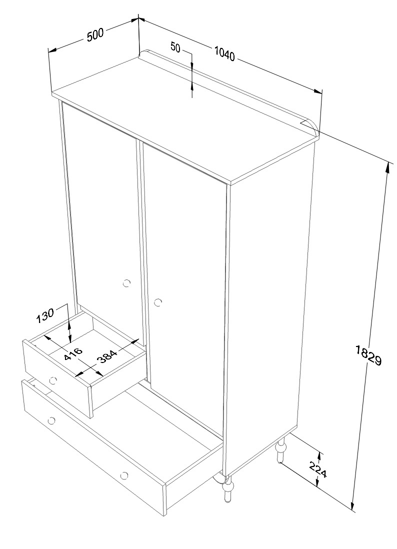 dwie pojemne szuflady w dolnej części, idealne na bieliznę, piżamy i dodatki.