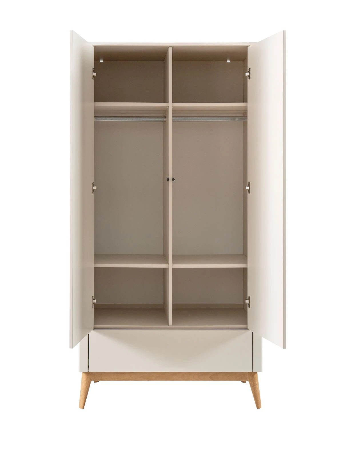 Szafa dwudrzwiowa Seth szampańska – pojemna szafa dziecięca z półkami i drążkami