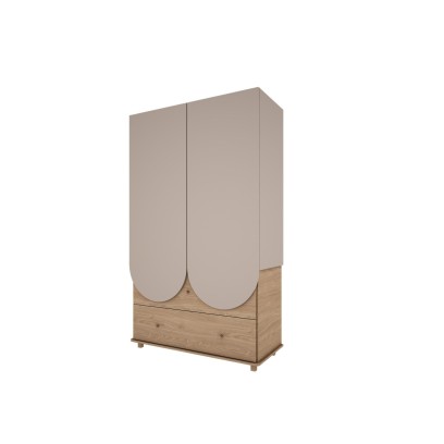 Kolekcja Bloom łączy nowoczesną linię mebli z ciepłą, kojącą kolorystyką. Wysoka szafa w odcieniu kaszmiru z dębowymi elementami: