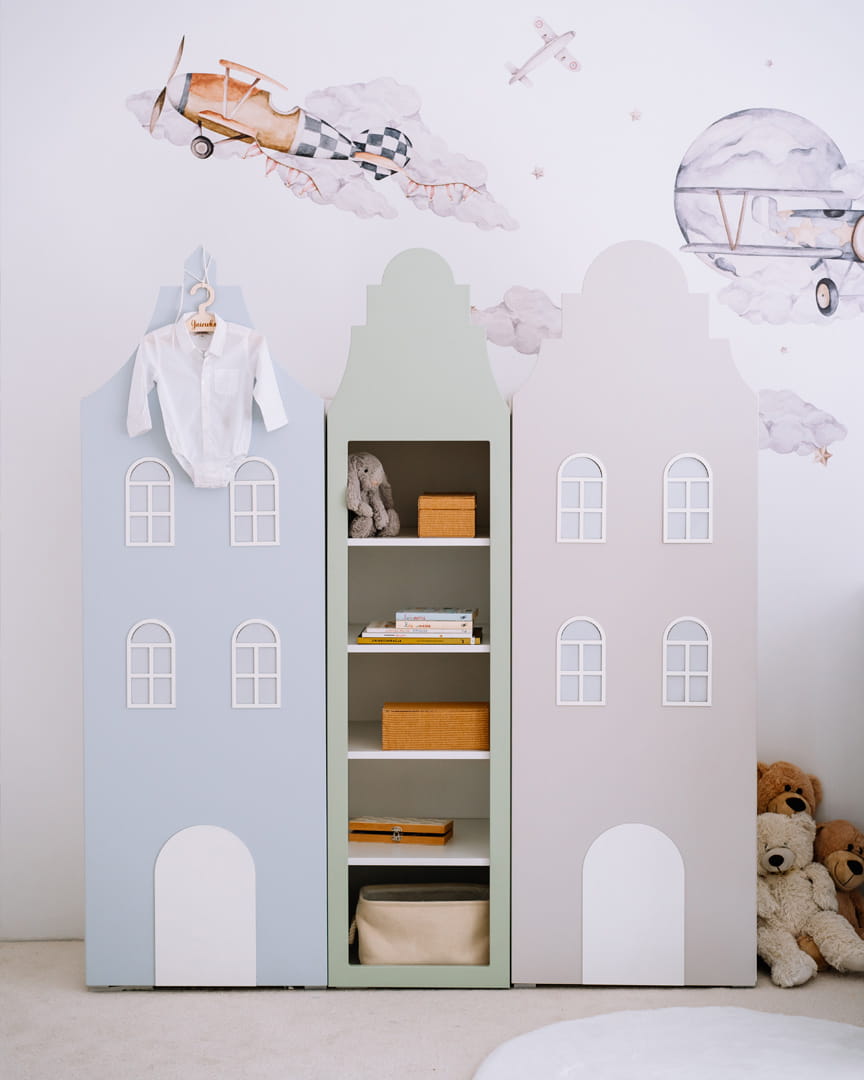 Kamieniczka w pokoju dziecka? Czemu nie! Szafa dla dziecka, w kształcie domku jest nie tylko praktycznym elementem umeblowania, ale również oryginalną dekoracją dziecięcego pokoju. Szafa domek, której front przypomina fasadę średniowiecznej kamieniczki wniesie wiele uroku do pokoju dziewczynki i chłopca, a także pozwoli - przy odrobinie wyobraźni przenieść się w zaczarowany, bajkowy świat lub poczuć się, jak na krakowskim rynku.