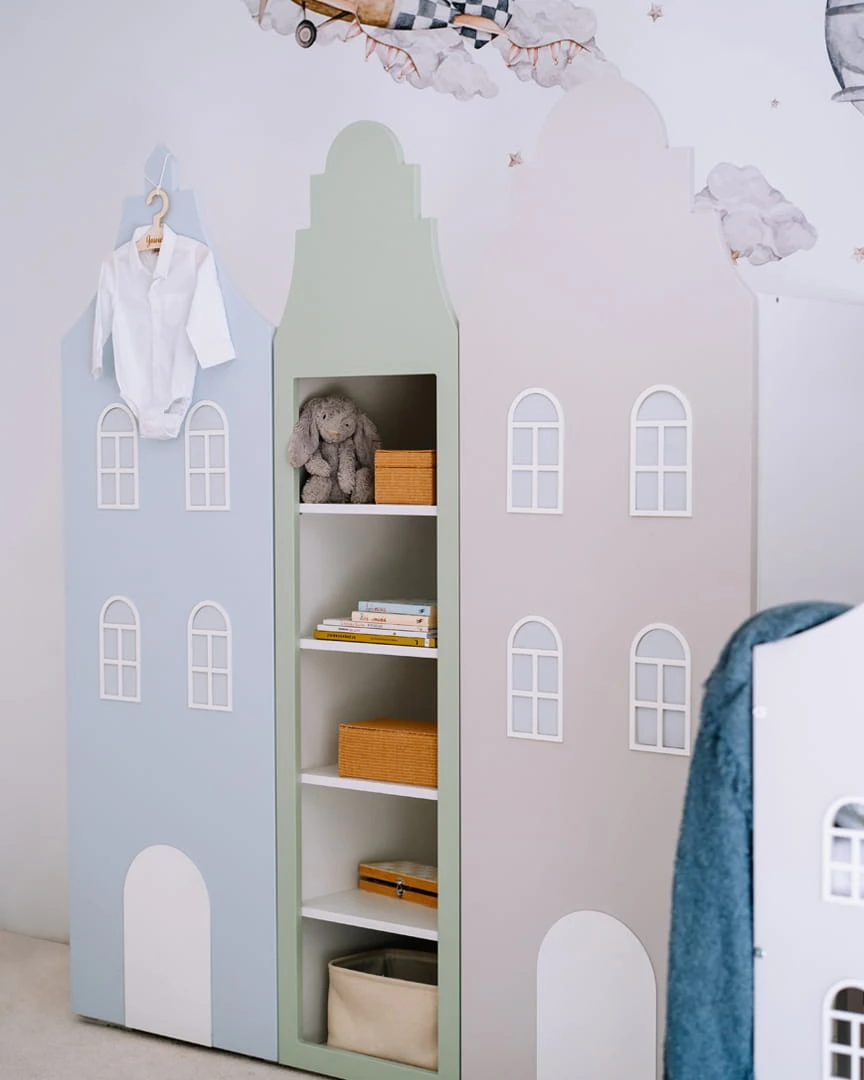 Kamieniczka w pokoju dziecka? Czemu nie! Szafa dla dziecka, w kształcie domku jest nie tylko praktycznym elementem umeblowania, ale również oryginalną dekoracją dziecięcego pokoju. Szafa domek, której front przypomina fasadę paryskiej kamieniczki wniesie wiele uroku do pokoju dziewczynki i chłopca, a także pozwoli - przy odrobinie wyobraźni przenieść się w zaczarowany, bajkowy świat. Świat beztroskiej zabawy z rodzeństwem czy przyjaciółmi z przedszkola lub szkoły:)