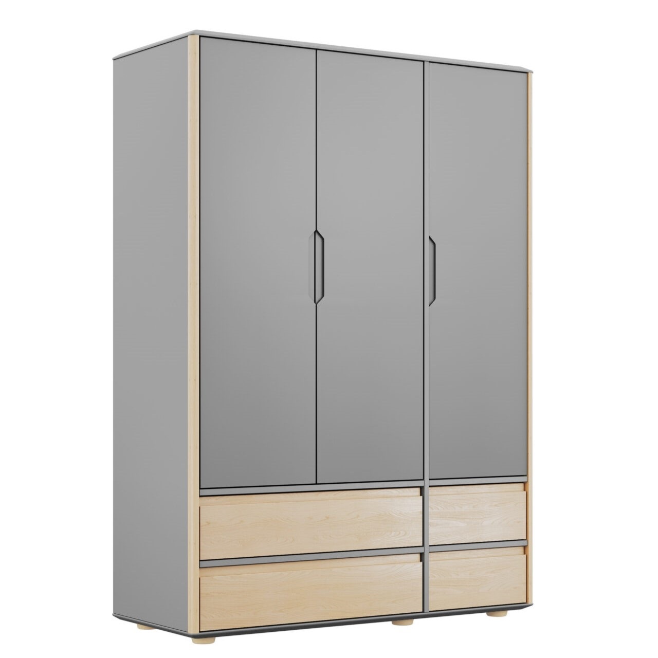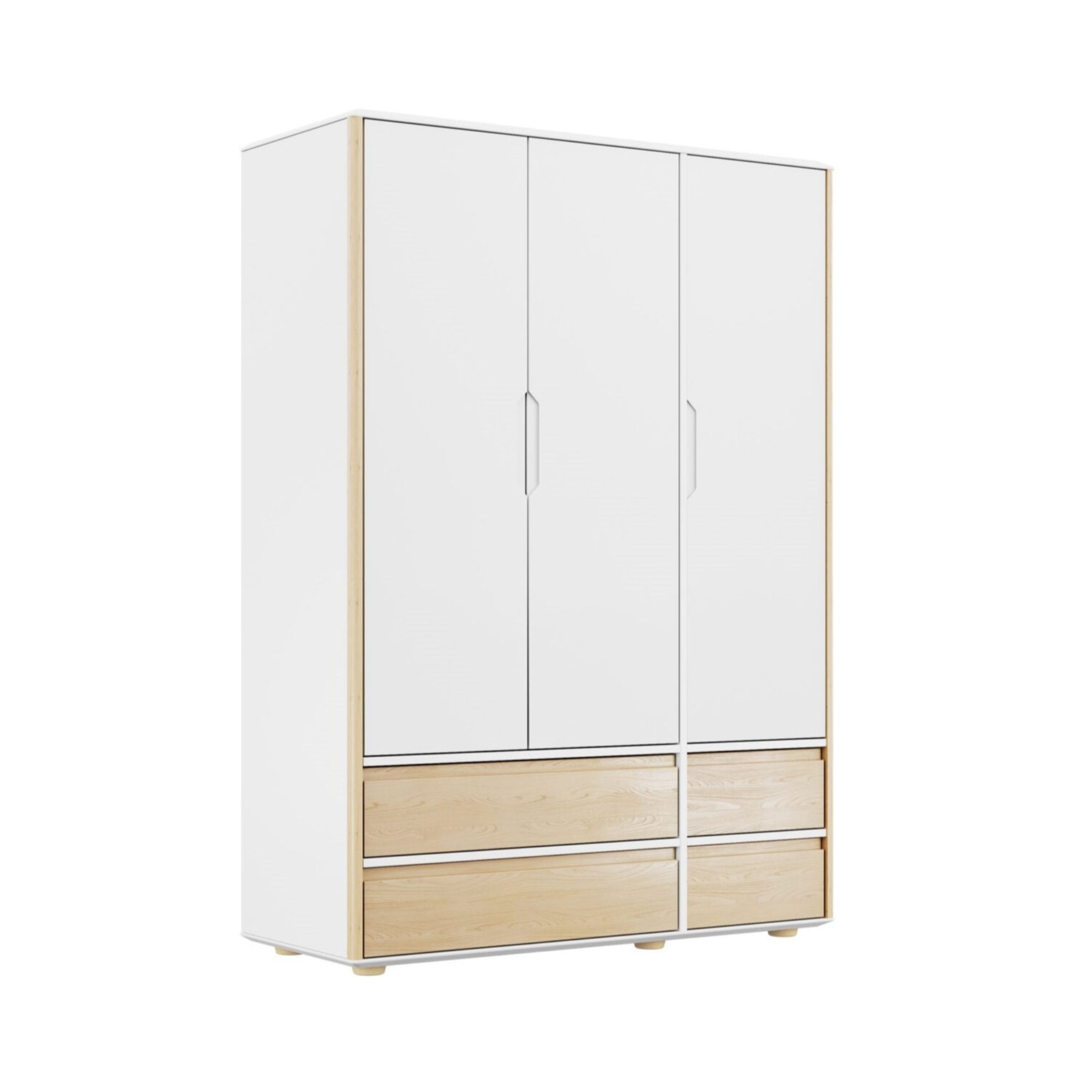 Szafa trzydrzwiowa Funflex z 4 szufladami to maksymalnie pojemna szafa do pokoju młodzieżowego o wymiarach 134,5 × 190 × 55 cm. W środku zmieścisz ubrania na co dzień, stroje sportowe i „wyjściowe” zestawy dla jednego nastolatka lub rodzeństwa. To model idealny do większych garderób młodzieżowych, który możesz połączyć z łóżkiem, biurkiem, regałami i komodami z kolekcji Funflex, tworząc spójny zestaw mebli młodzieżowych.