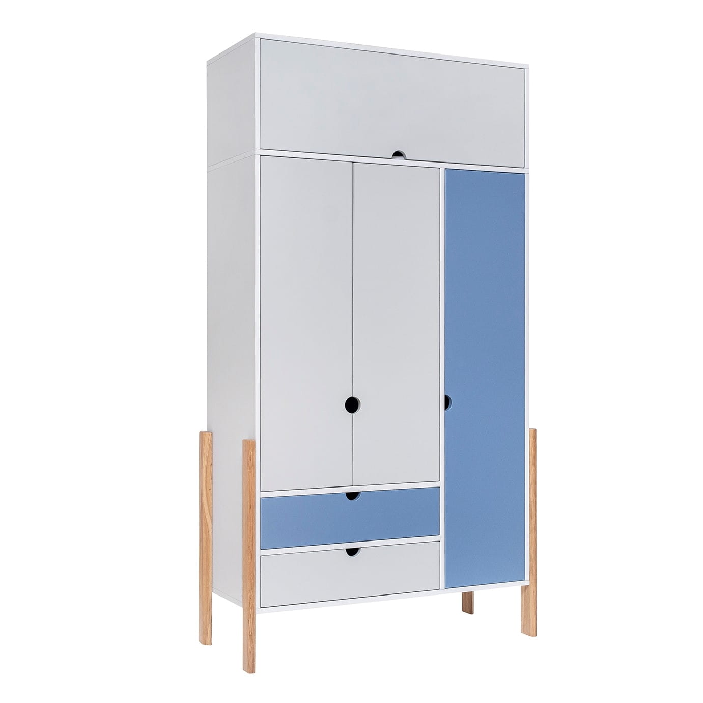 Szafa wysoka Nooi zaprojektowana została z myślą o potrzebach młodych ludzi dając nie tylko możliwość ułożenia i zawieszenia ubrań, ale także schowania sprzętu sportowego czy odzieży sezonowej. Służy temu dedykowana nadstawka na szafę, będąca wyposażeniem opcjonalnym.
