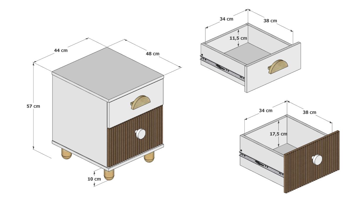 szuflada dolna: 38 × 34 × 17,5 cm.