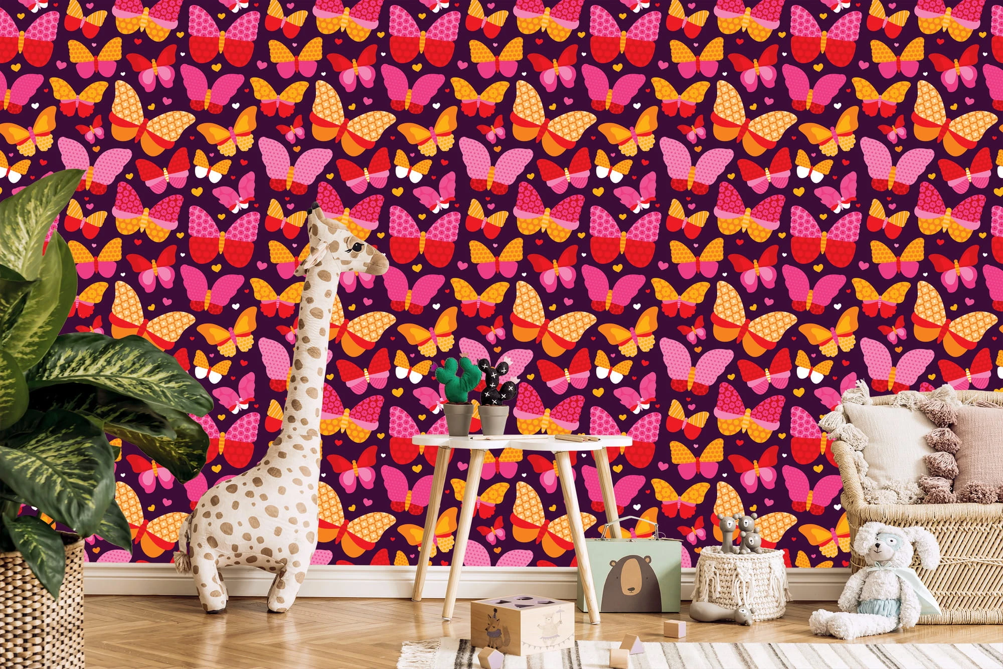Tapeta Dla Dziewczynek, Kolorowe Motyle, Kropki