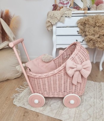 Wózek dla lalek dla 2 latki - z kokardą i pościelą