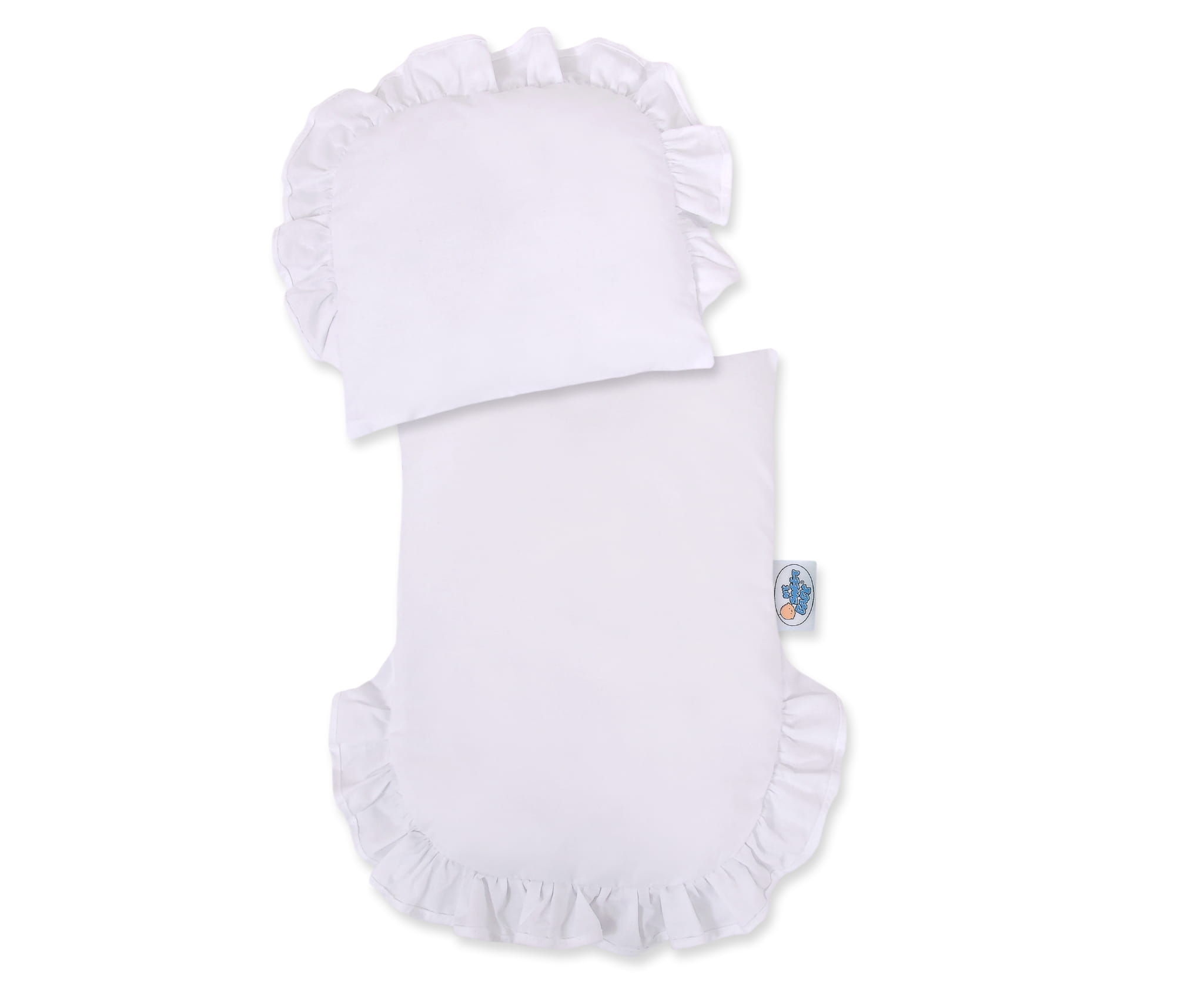 - komplet pościeli dla lalek oraz wyściółka wózka, z kokardkami po bokach,